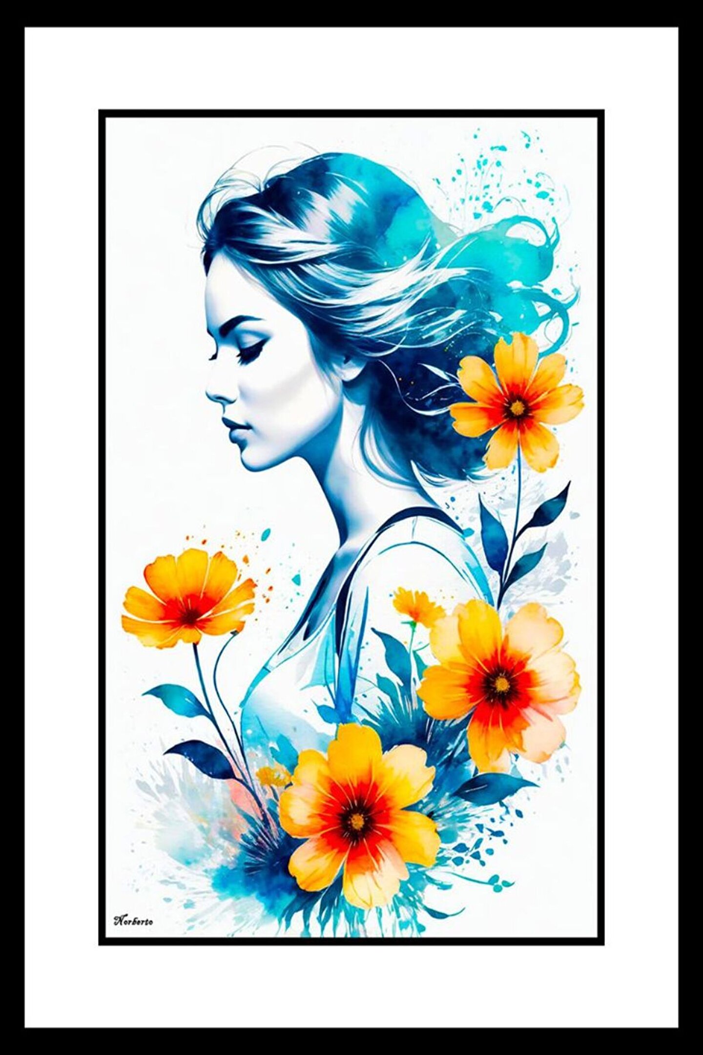 Güller ve Kadın Digital Art ( ÇERÇEVESİZ - ÇERÇEVE YOKTUR ) ( ULTRA HD ) FOLYO AFİŞ - POSTER