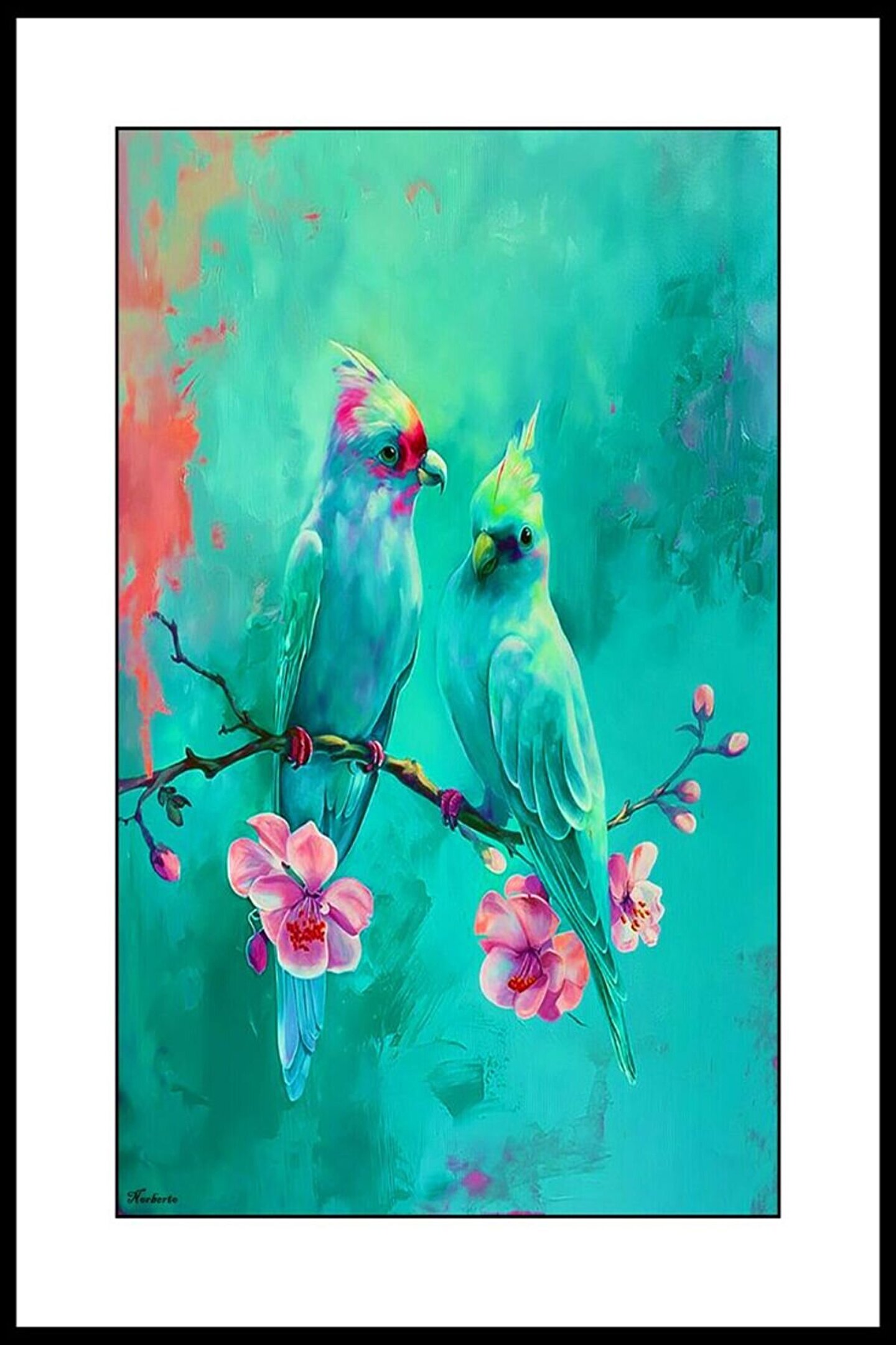 İki Papağan Digital Art ( ÇERÇEVESİZ - ÇERÇEVE YOKTUR ) ( ULTRA HD ) FOLYO AFİŞ - POSTER