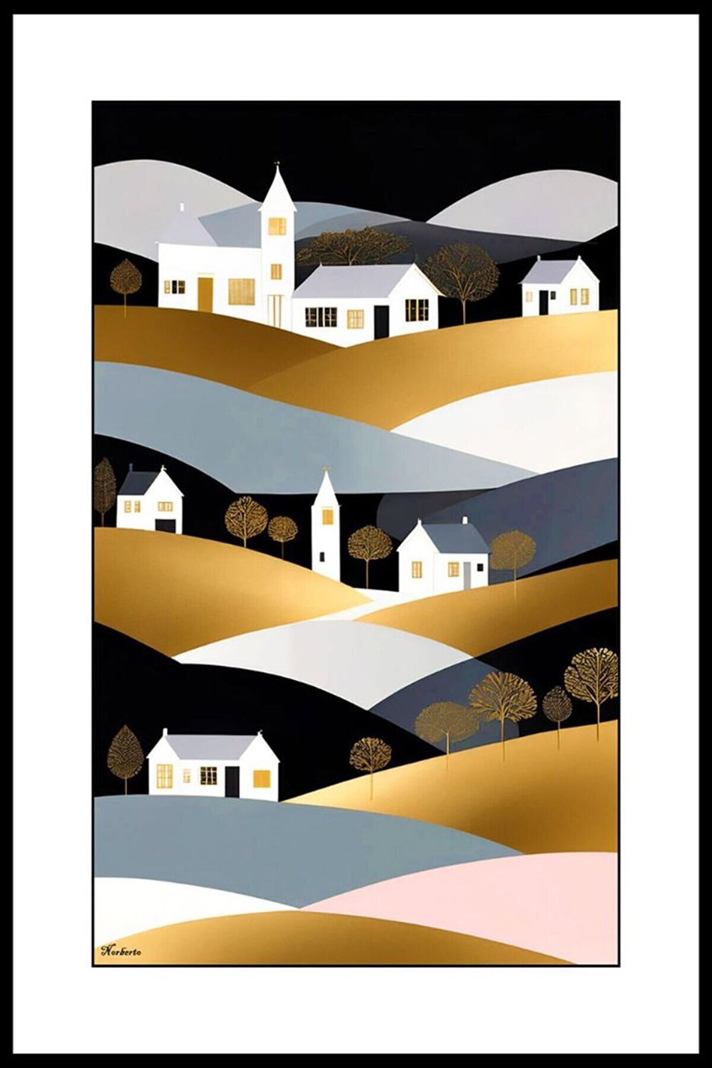 Kasabada Evler Digital Art ( ÇERÇEVESİZ - ÇERÇEVE YOKTUR ) ( ULTRA HD ) FOLYO AFİŞ - POSTER