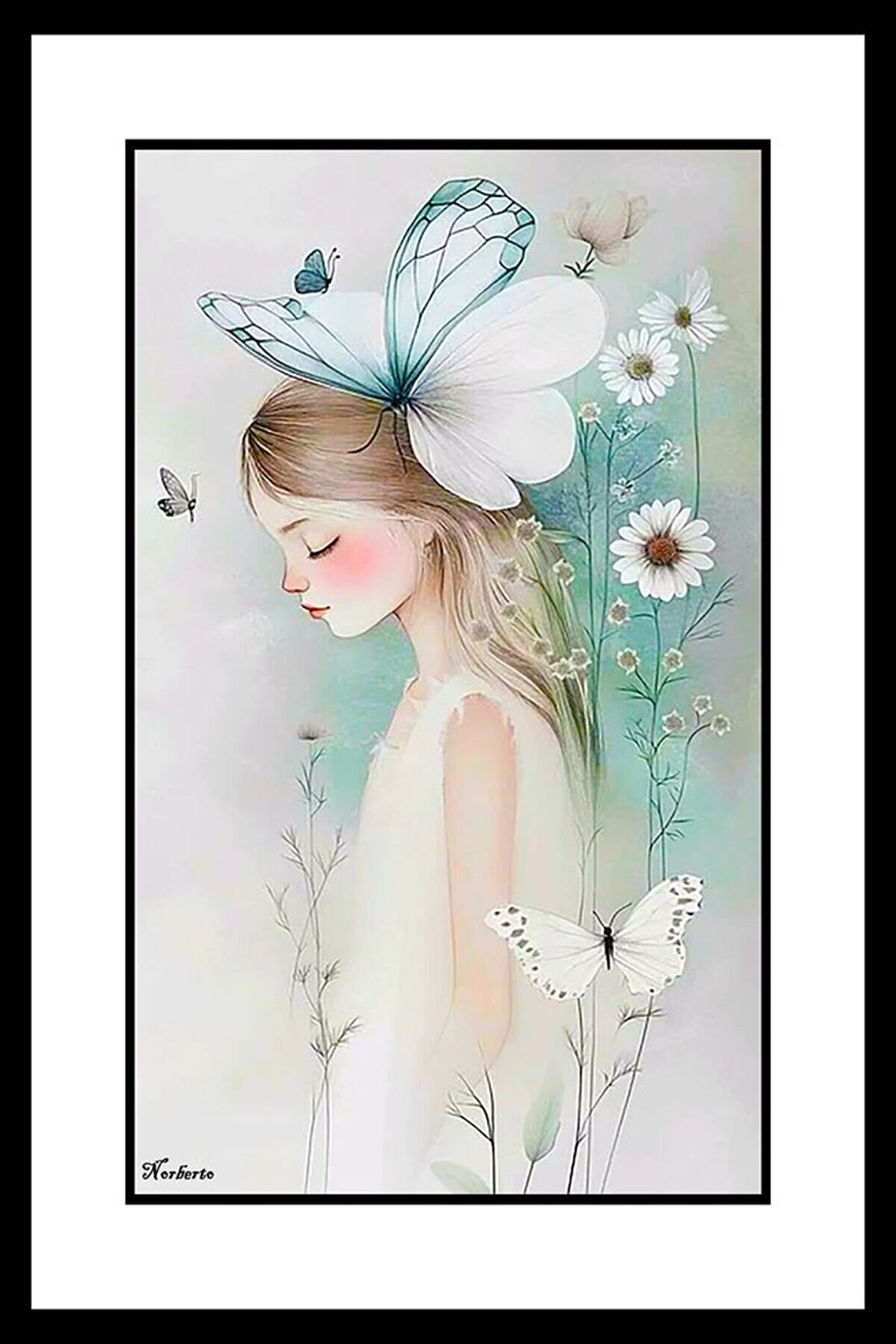 Kelebekli Kız Digital Art ( ÇERÇEVESİZ - ÇERÇEVE YOKTUR ) ( ULTRA HD ) FOLYO AFİŞ - POSTER