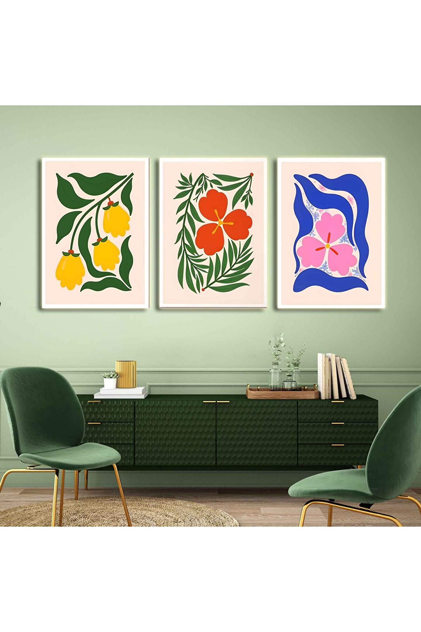 AKTÜEL POSTER Matisse - Boho - Art Deco - Soyut - Doğa ( 3 lü Çerçevesiz ) Poster - Afiş - Tablo KR2C00708