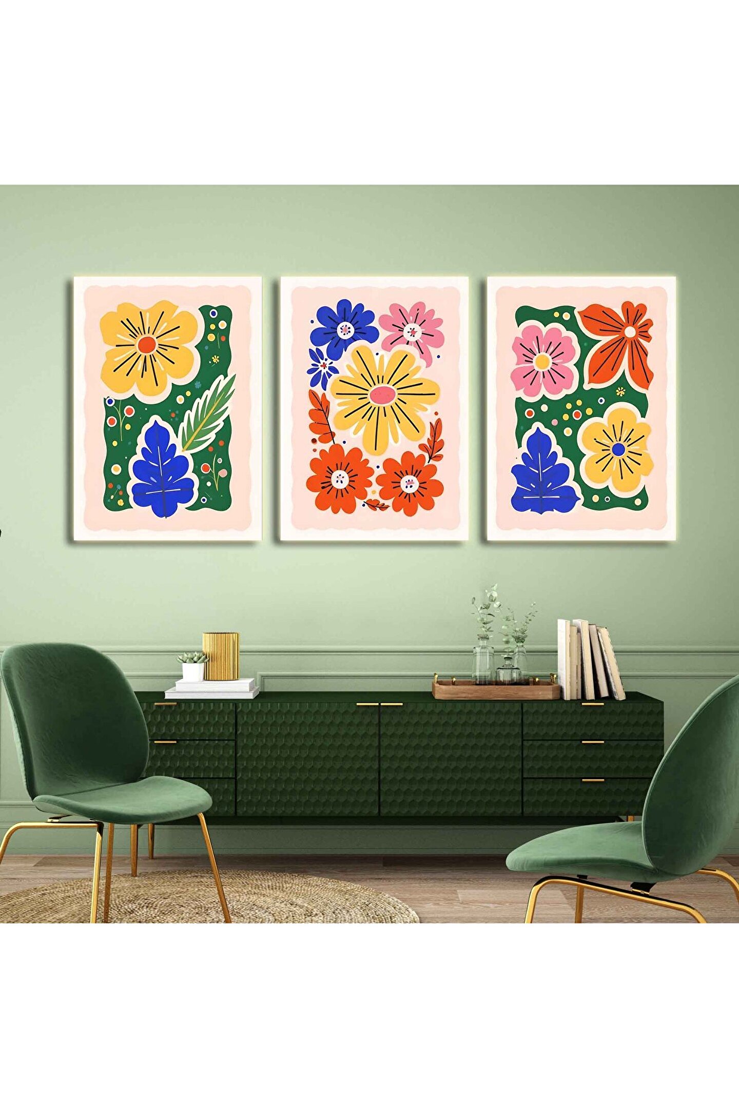 AKTÜEL POSTER Matisse - Boho - Art Deco - Soyut - Doğa ( 3 lü Çerçevesiz ) Poster - Afiş - Tablo KR2C00716