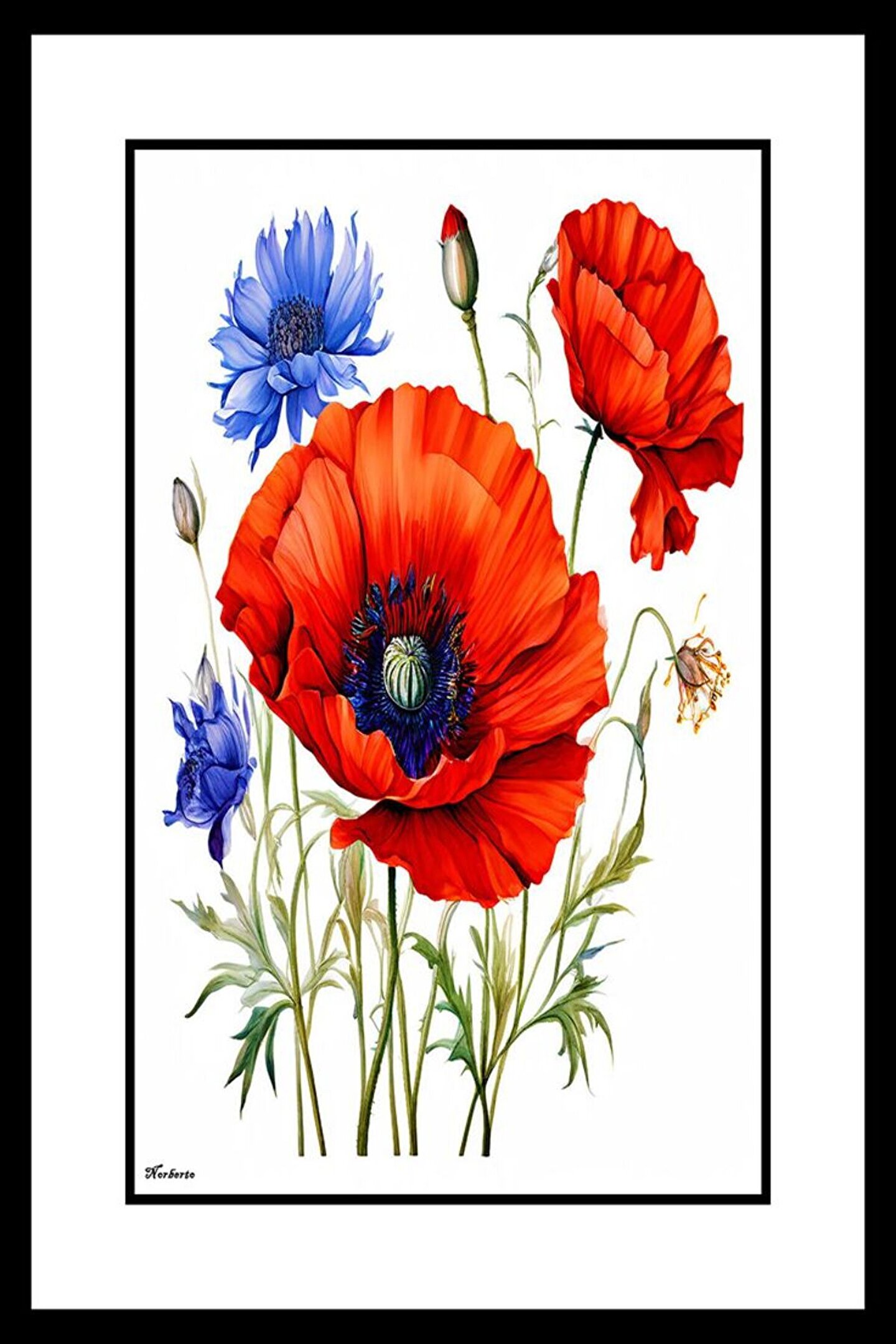 Mavi Kırmız Çiçekler Digital Art ( ÇERÇEVESİZ - ÇERÇEVE YOKTUR ) ( ULTRA HD ) FOLYO AFİŞ - POSTER