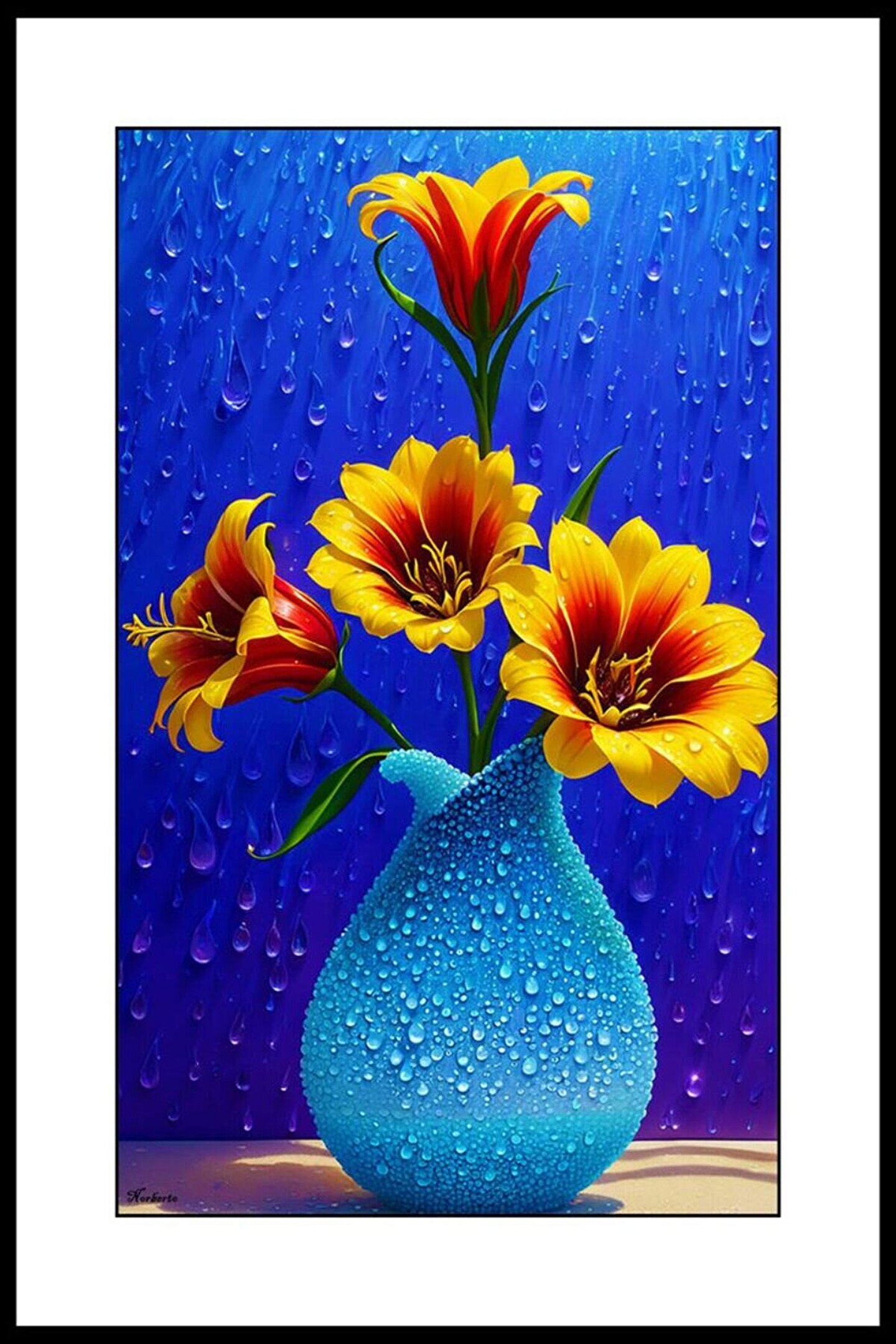 Mavi Vazoda Çiçekler Digital Art ( ÇERÇEVESİZ - ÇERÇEVE YOKTUR ) ( ULTRA HD ) FOLYO AFİŞ - POSTER