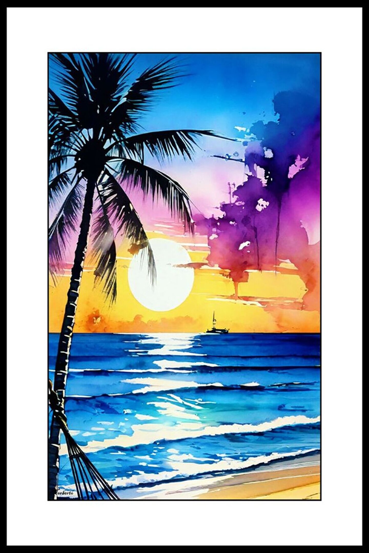 Sahilde Günbatımı Digital Art ( ÇERÇEVESİZ - ÇERÇEVE YOKTUR ) ( ULTRA HD ) FOLYO AFİŞ - POSTER