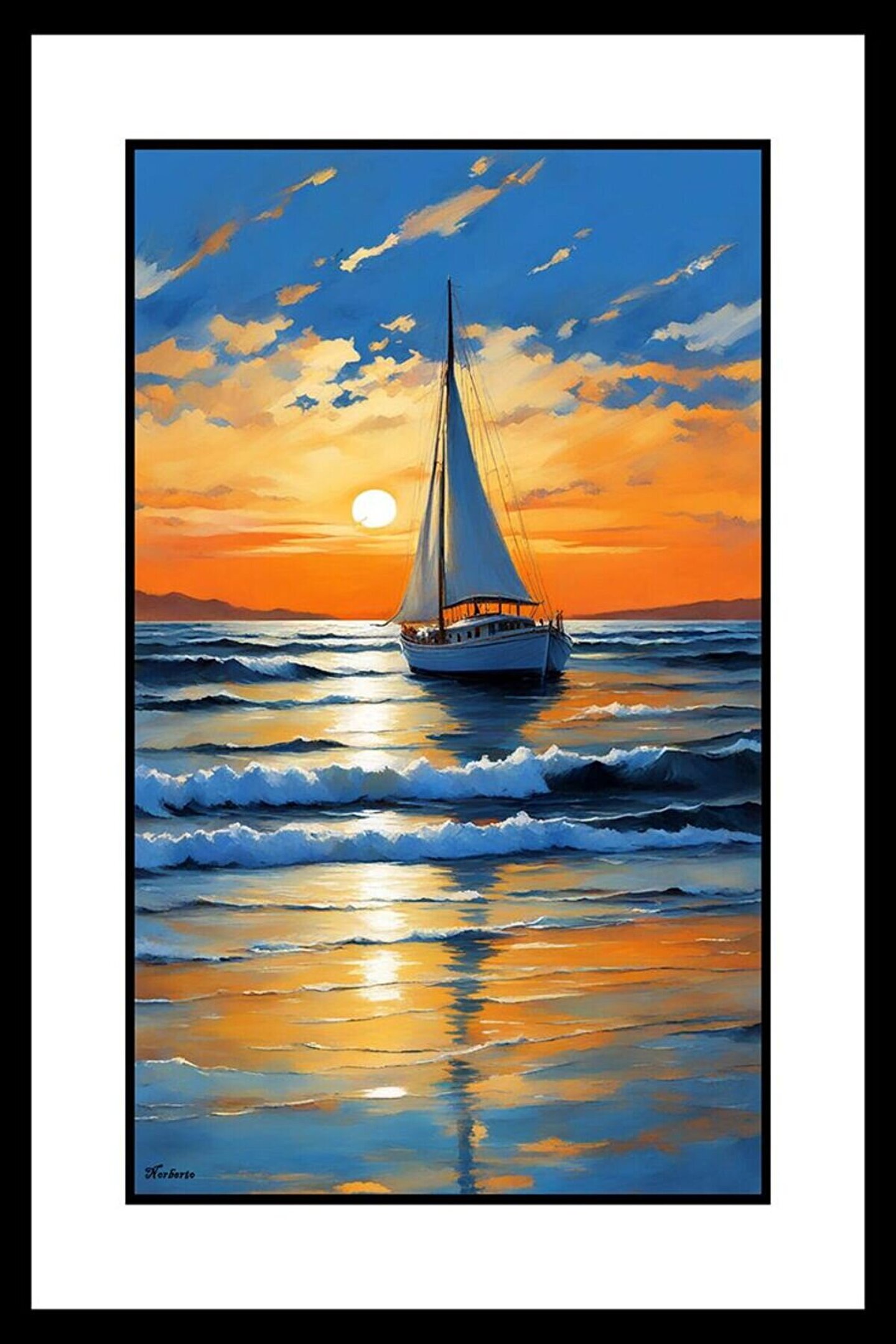 Sahildeki Yelkenli Digital Art ( ÇERÇEVESİZ - ÇERÇEVE YOKTUR ) ( ULTRA HD ) FOLYO AFİŞ - POSTER