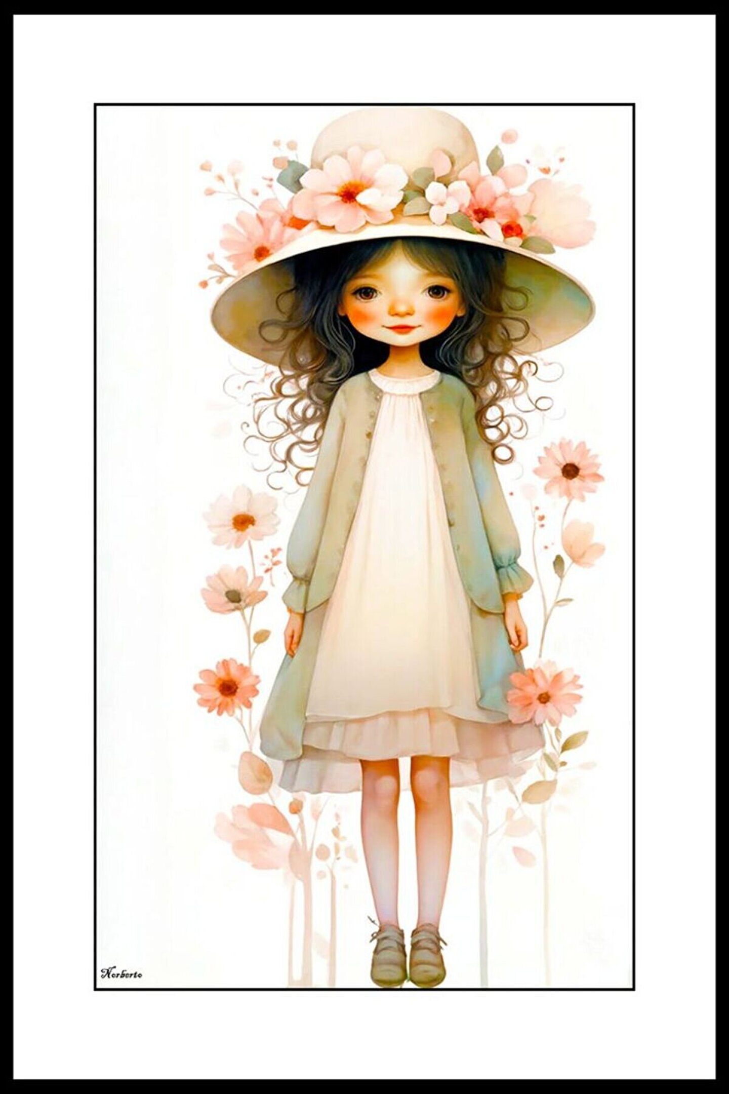 Şapkalı Kız Digital Art ( ÇERÇEVESİZ - ÇERÇEVE YOKTUR ) ( ULTRA HD ) FOLYO AFİŞ - POSTER