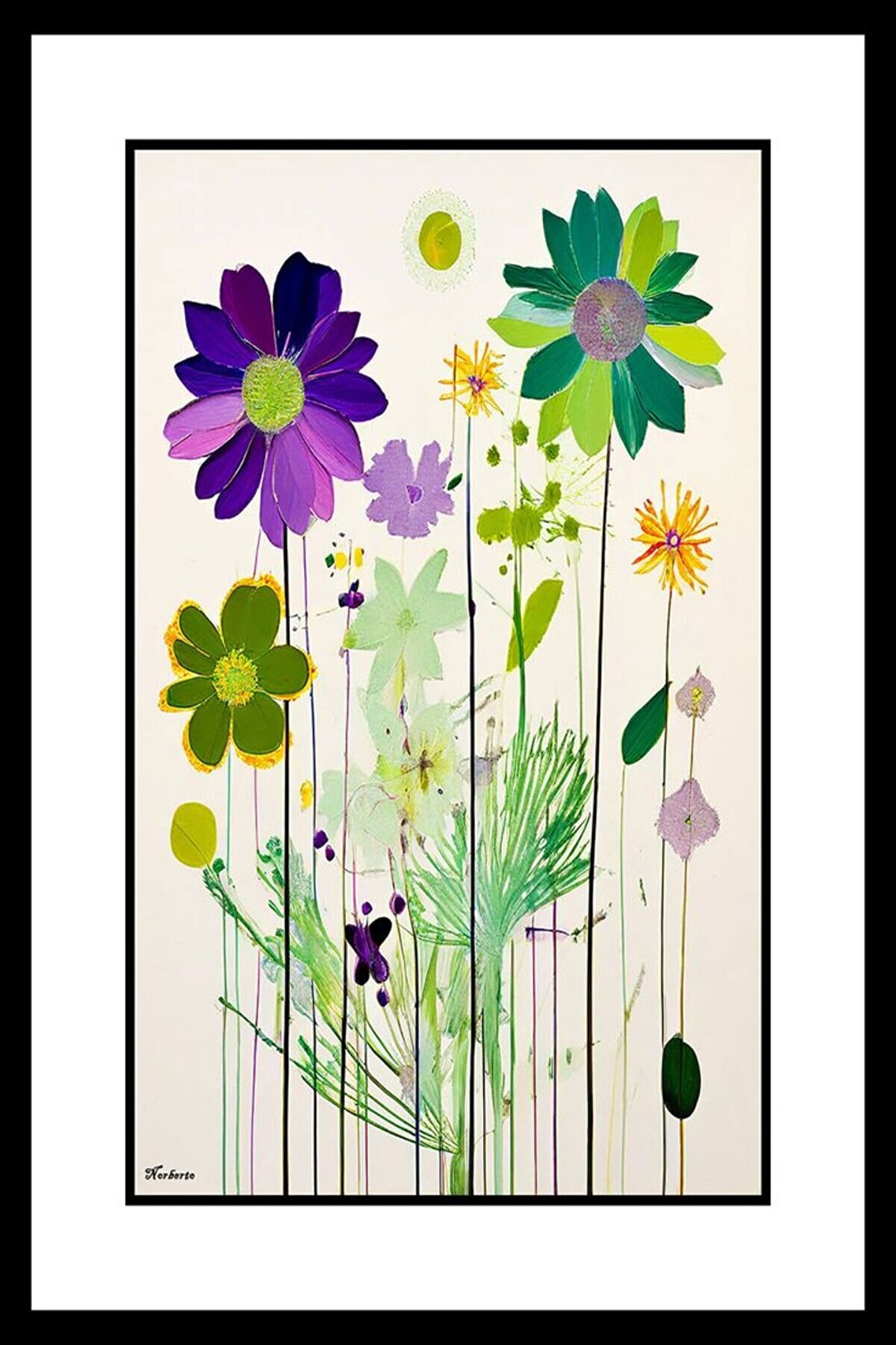 Uzun Dallı Çiçekler Digital Art ( ÇERÇEVESİZ - ÇERÇEVE YOKTUR ) ( ULTRA HD ) FOLYO AFİŞ - POSTER