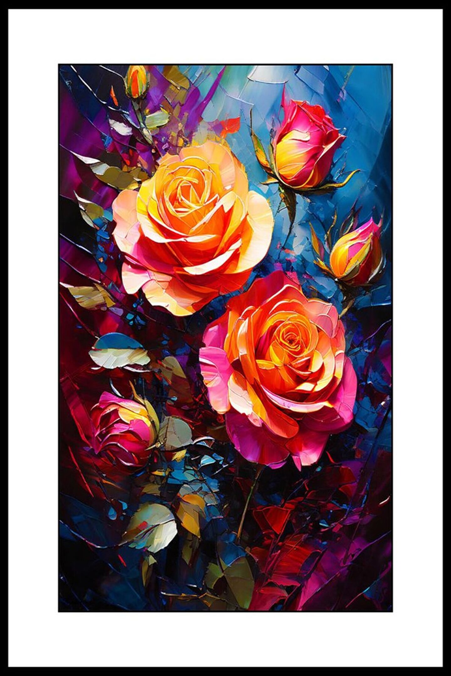 AKTÜEL POSTER Yağlıboya Güller Digital Art ( ÇERÇEVESİZ - ÇERÇEVE YOKTUR ) ( ULTRA HD ) FOLYO AFİŞ - POSTER
