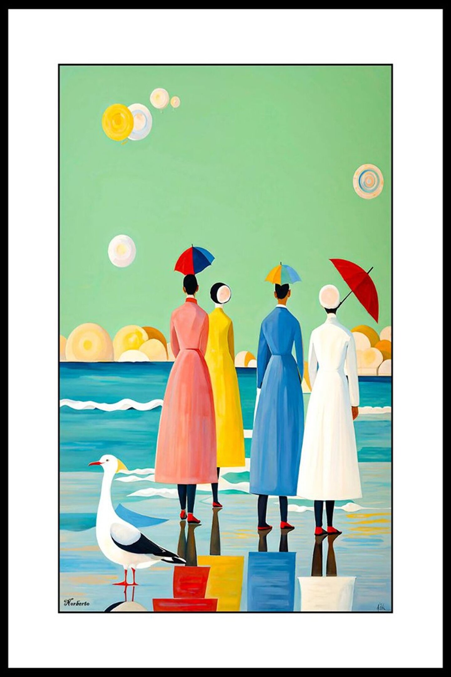 Yağmurda Kadınlar Digital Art ( ÇERÇEVESİZ - ÇERÇEVE YOKTUR ) ( ULTRA HD ) FOLYO AFİŞ - POSTER