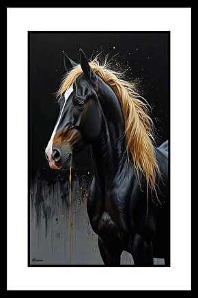 AKTÜEL POSTER Yaşlı Siyah At Digital Art ( ÇERÇEVESİZ - ÇERÇEVE YOKTUR ) ( ULTRA HD ) FOLYO AFİŞ - POSTER