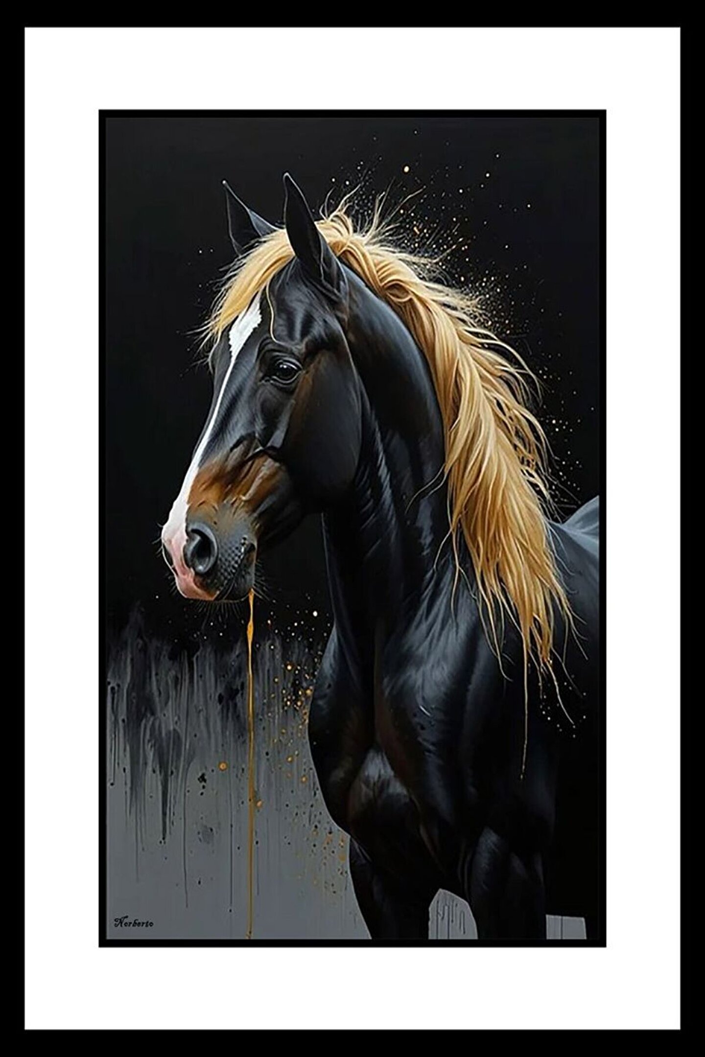 AKTÜEL POSTER Yaşlı Siyah At Digital Art ( ÇERÇEVESİZ - ÇERÇEVE YOKTUR ) ( ULTRA HD ) FOLYO AFİŞ - POSTER