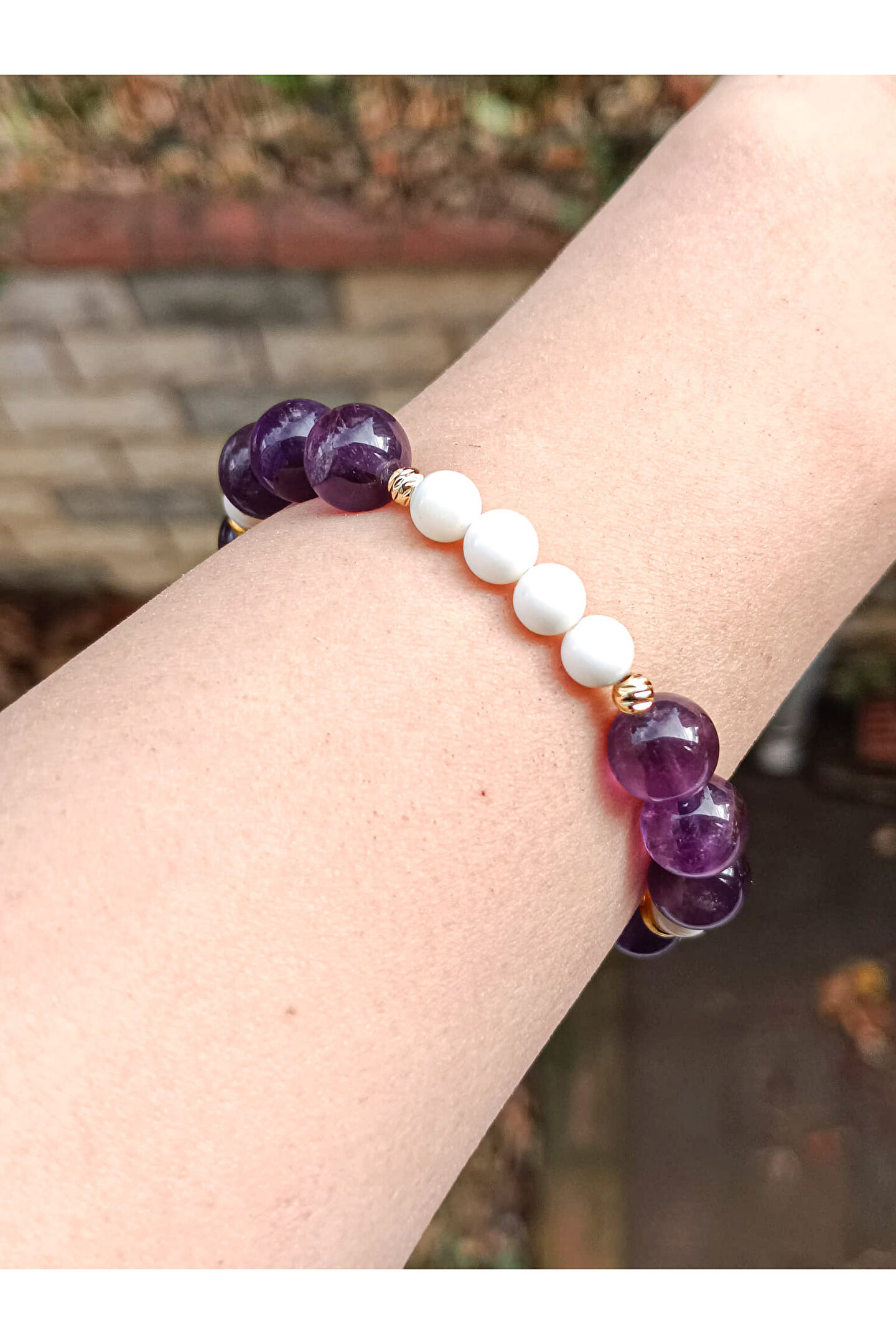 Doğal taş materyali ile üretilmiş, her bir bileklik benzersiz ve otantik bir görünüm sunar; Amest ve sedef taşı kullanımı sayesinde, bilekliğe zarif bir parlaklık ve estetik bir dokunuş katar; Doğal taş bileklik, hem günlük kullanım hem de özel günler için ideal bir aksesuar seçeneği olarak öne çıkar;
