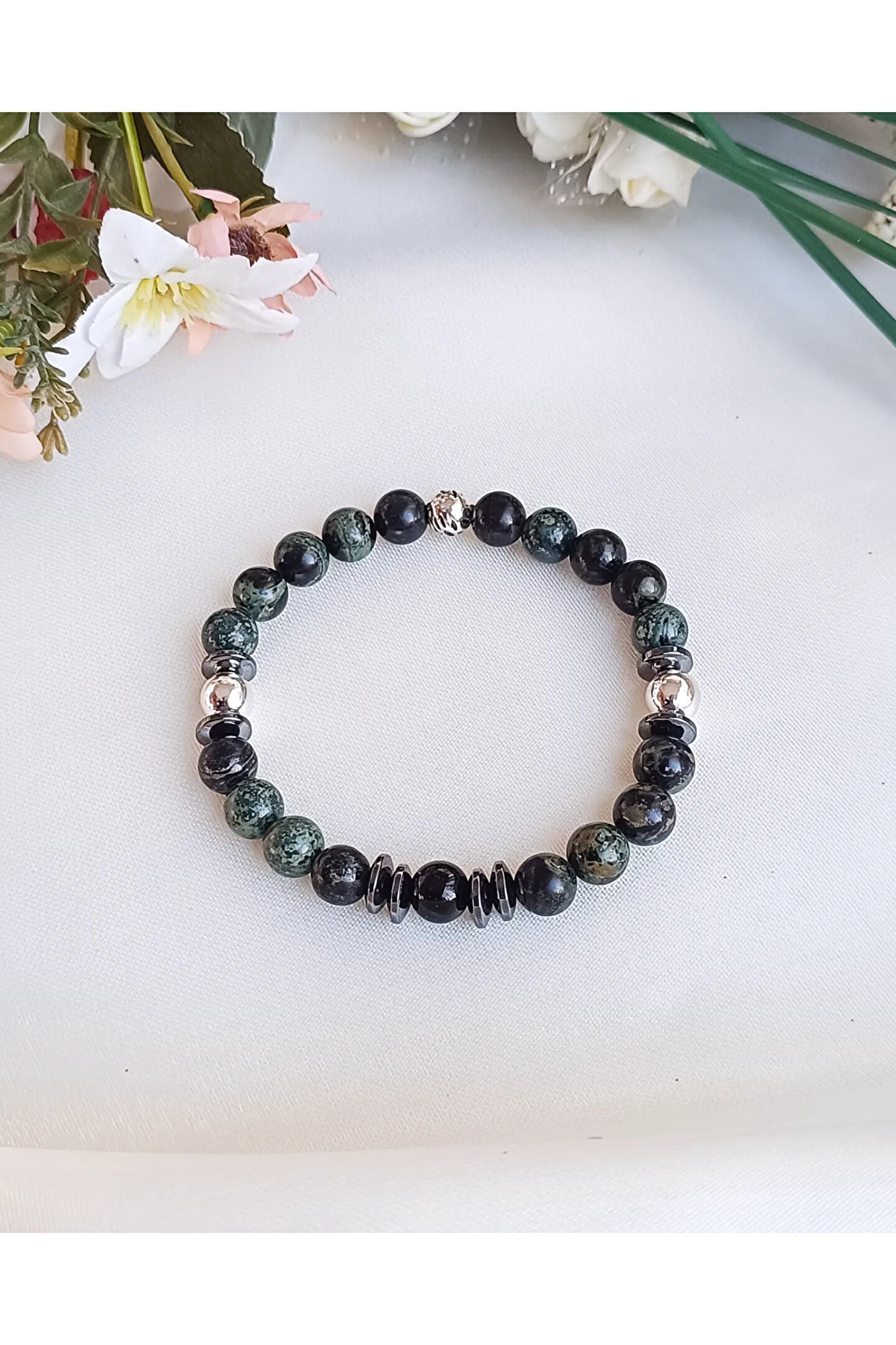 - Doğal taş bileklik, şıklığınızı tamamlayacak zarif bir aksesuar seçeneği sunar; - Serpentin taşı kullanımı sayesinde bilekliğinizde benzersiz bir dokunuş ve estetik bir görünüm elde edersiniz; - Doğal taş materyali ile hem dayanıklılık hem de estetik açıdan üstün bir deneyim sağlar; - Her bileklik, el yapımı olduğundan her biri eşsiz ve özgün bir tasarıma sahiptir;