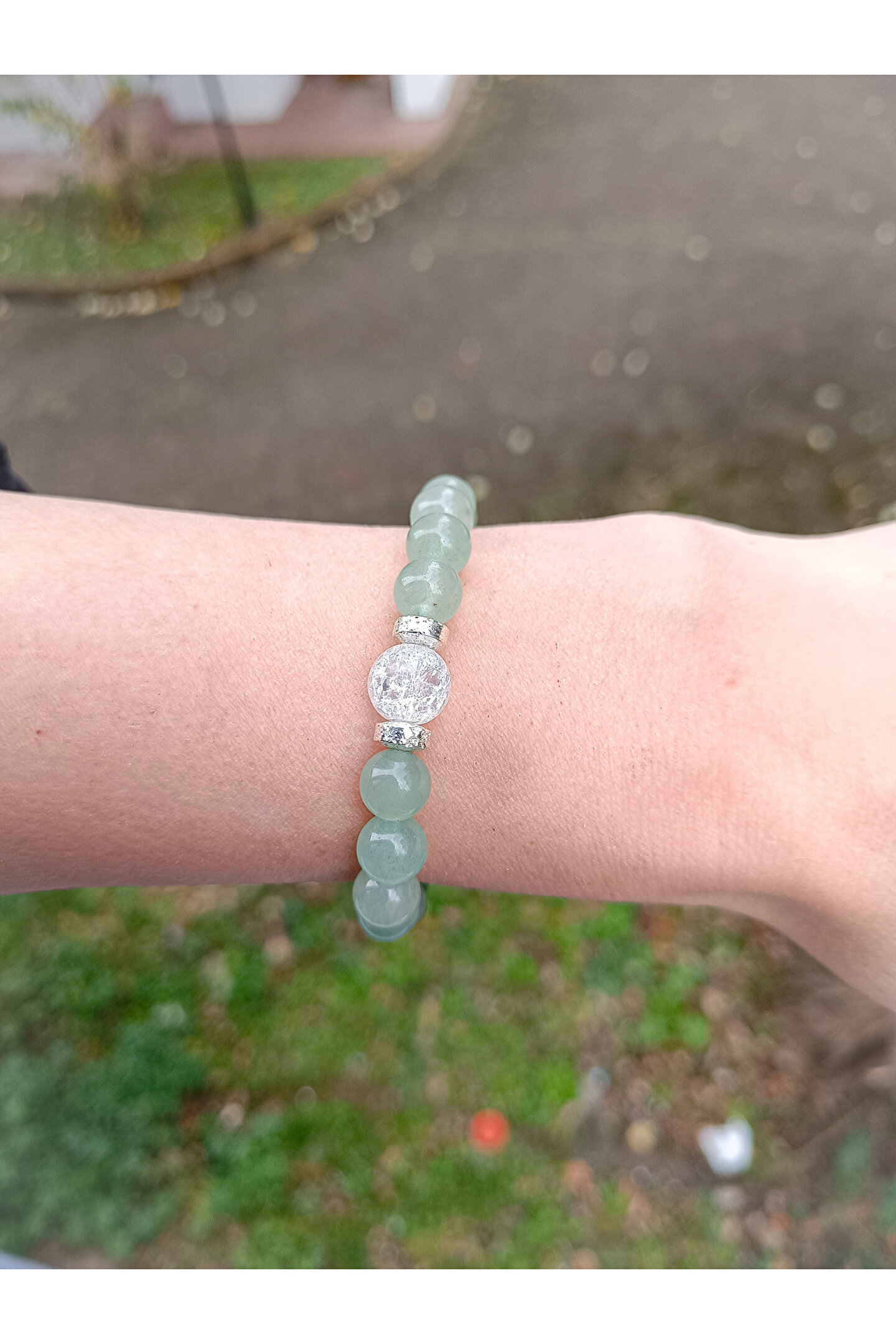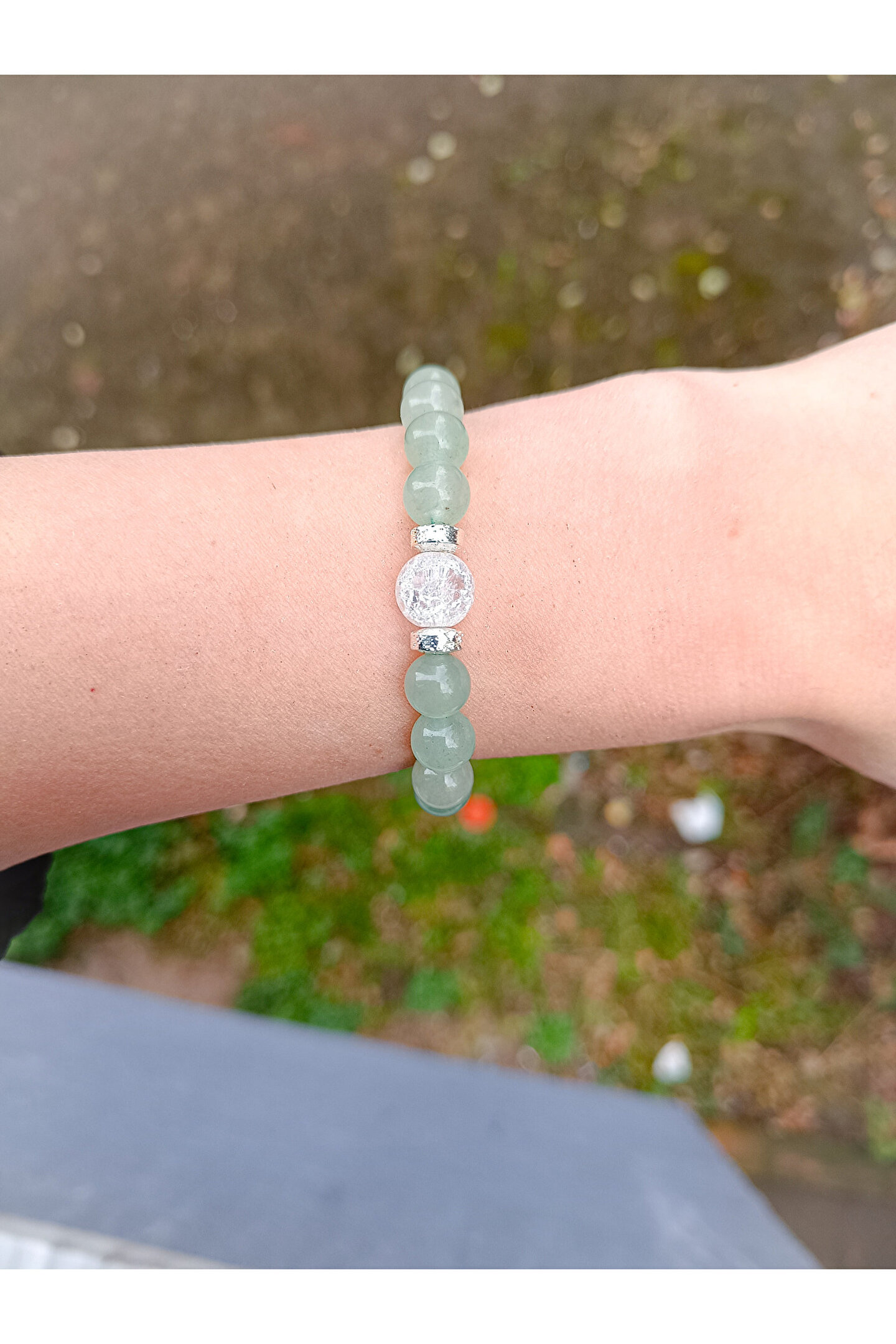 Doğal taş bileklik, şıklığınızı tamamlayacak zarif bir aksesuardır; Aventurin ve necef taşı gibi doğal taşların eşsiz renk ve desenleriyle göz alıcı bir görünüm sunar; Her bileklik, benzersiz ve otantik bir stil ifade ederken, doğanın güzelliklerini bileğinizde taşımanızı sağlar; Doğal taş kullanımı sayesinde hem dayanıklılık hem de estetik bir dokunuş sunar;