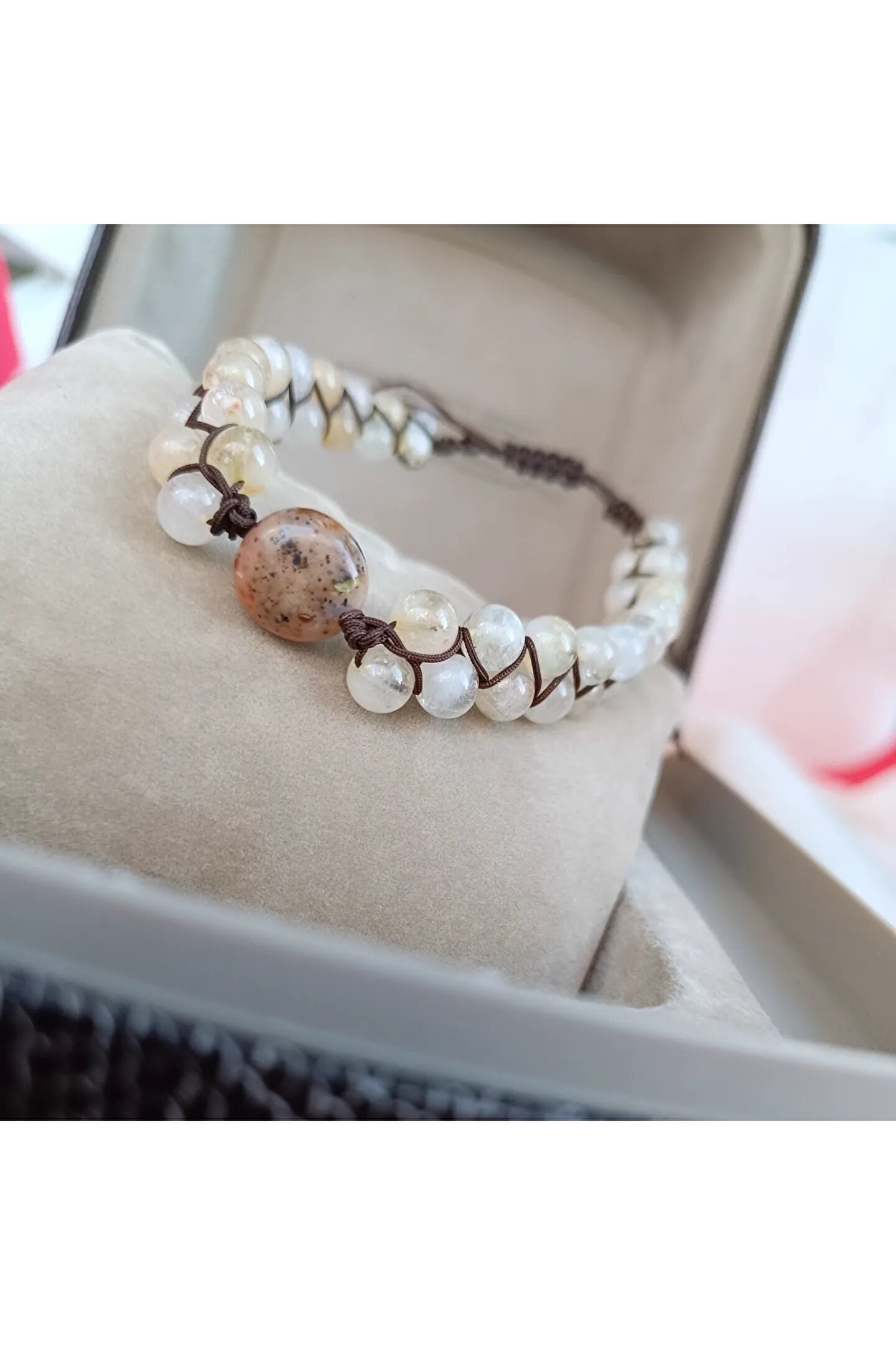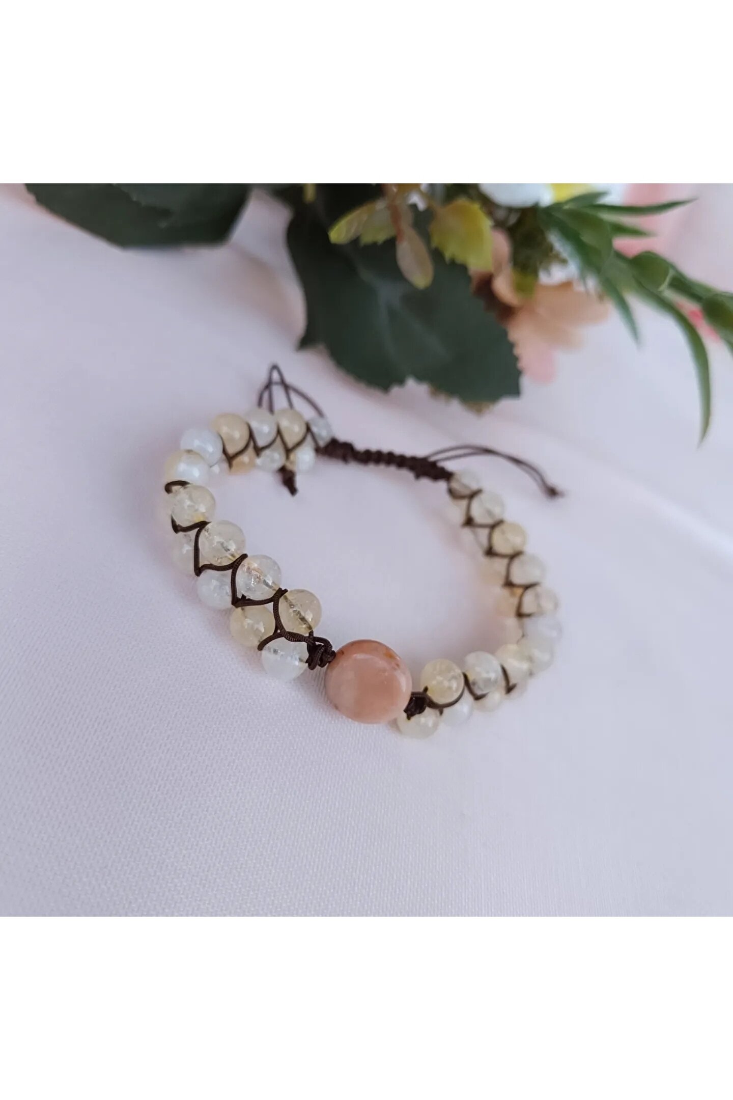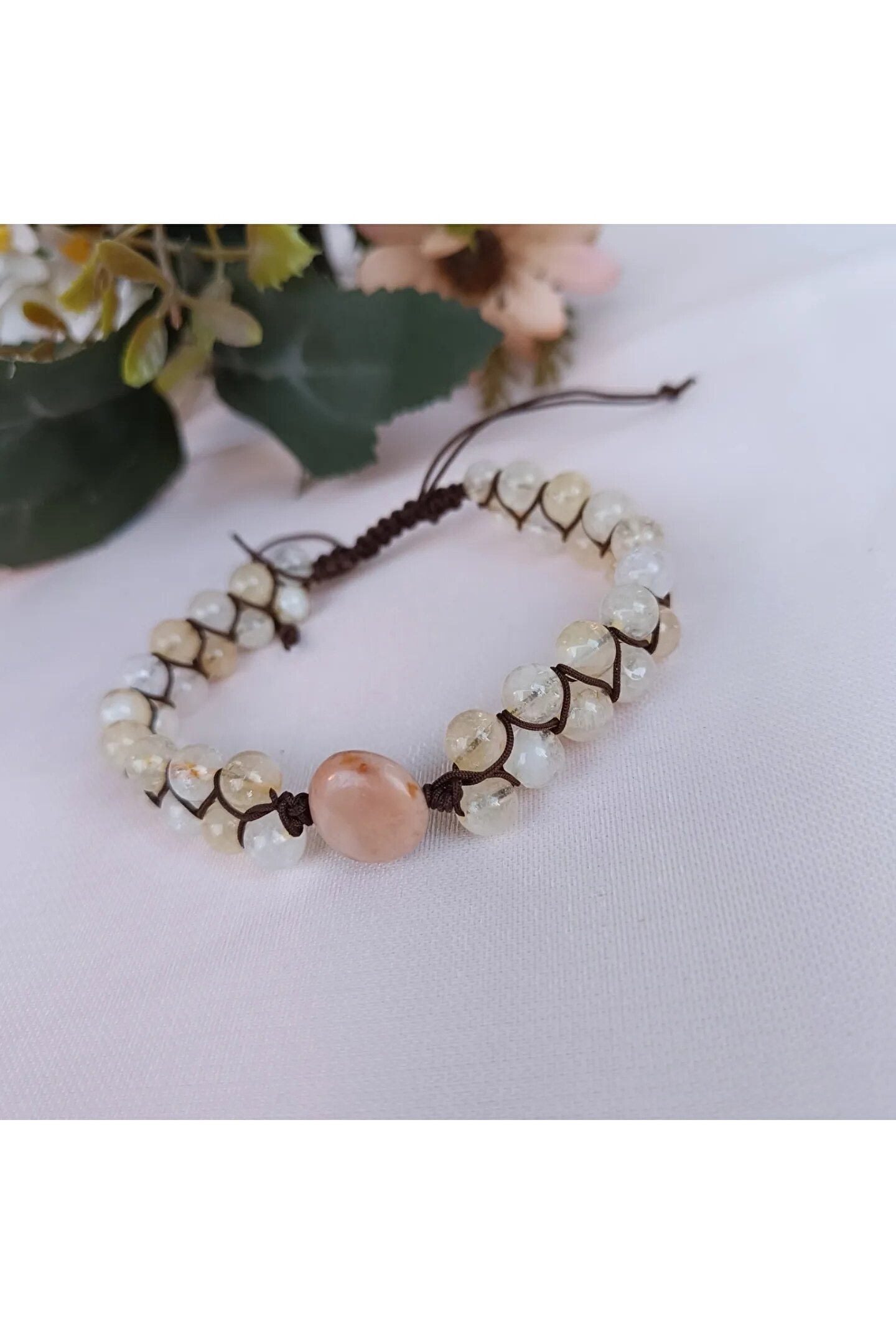 Doğal sitrin taşı, bileklikte kullanılan ana malzeme olarak öne çıkar ve bu sayede her parça benzersiz ve otantik bir görünüm sunar; Doğal taş kullanımı, bilekliğin hem şık hem de doğayla iç içe bir his uyandırmasını sağlar; Parlak ve canlı renkleriyle dikkat çeken sitrin taşı, bilekliğe zarif bir parlaklık katar; Doğal taş bileklik, günlük kullanım için idealdir ve her türlü kıyafetle kolayca uyum sağlar;