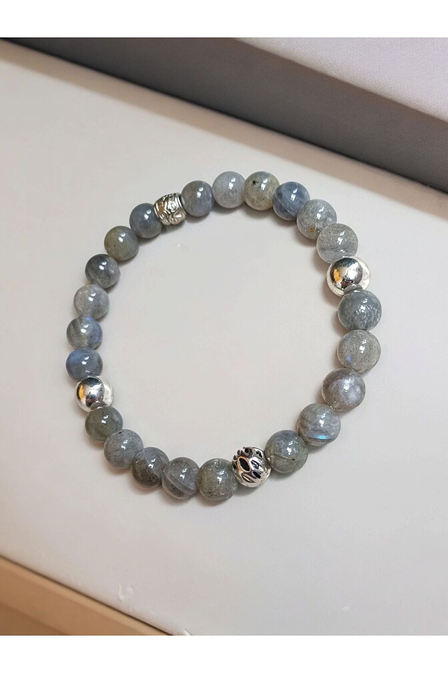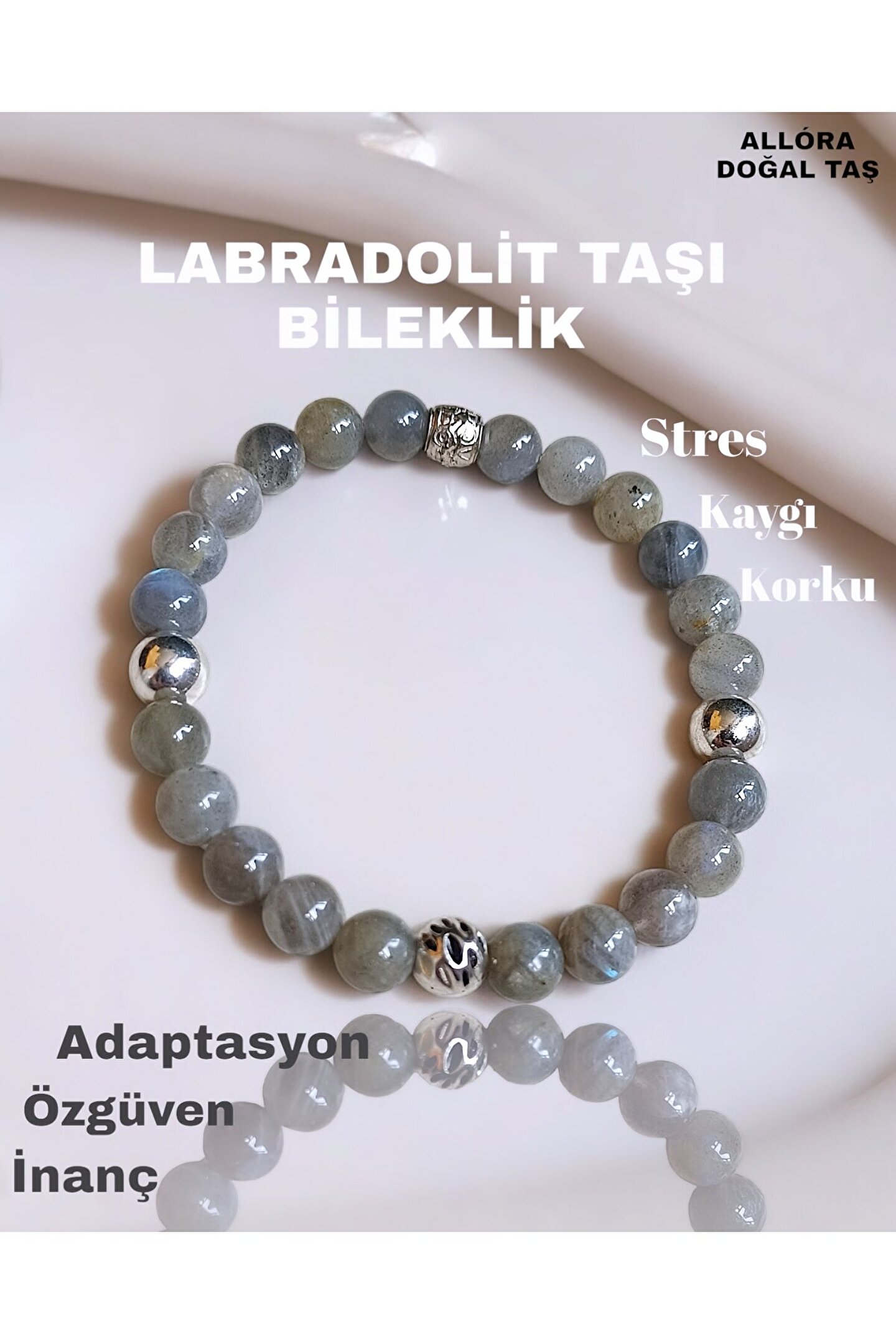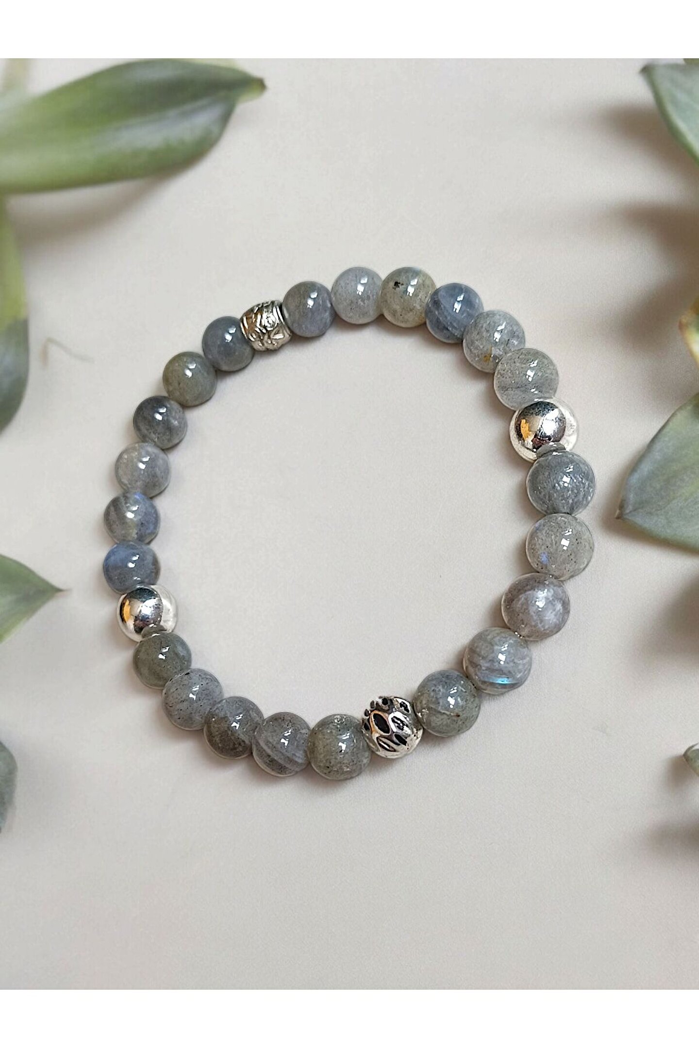 Doğal taş labradorit taşı, benzersiz desenleri ve renkleriyle dikkat çeken bir bileklik tasarımı sunar; Gümüş kaplama materyali ile hem şıklığı hem de dayanıklılığı bir arada barındırır, uzun süreli kullanım için idealdir; Doğal taşların eşsiz dokusu ve parlaklığı, her türlü kıyafetle uyum sağlayarak stilinizi tamamlar;