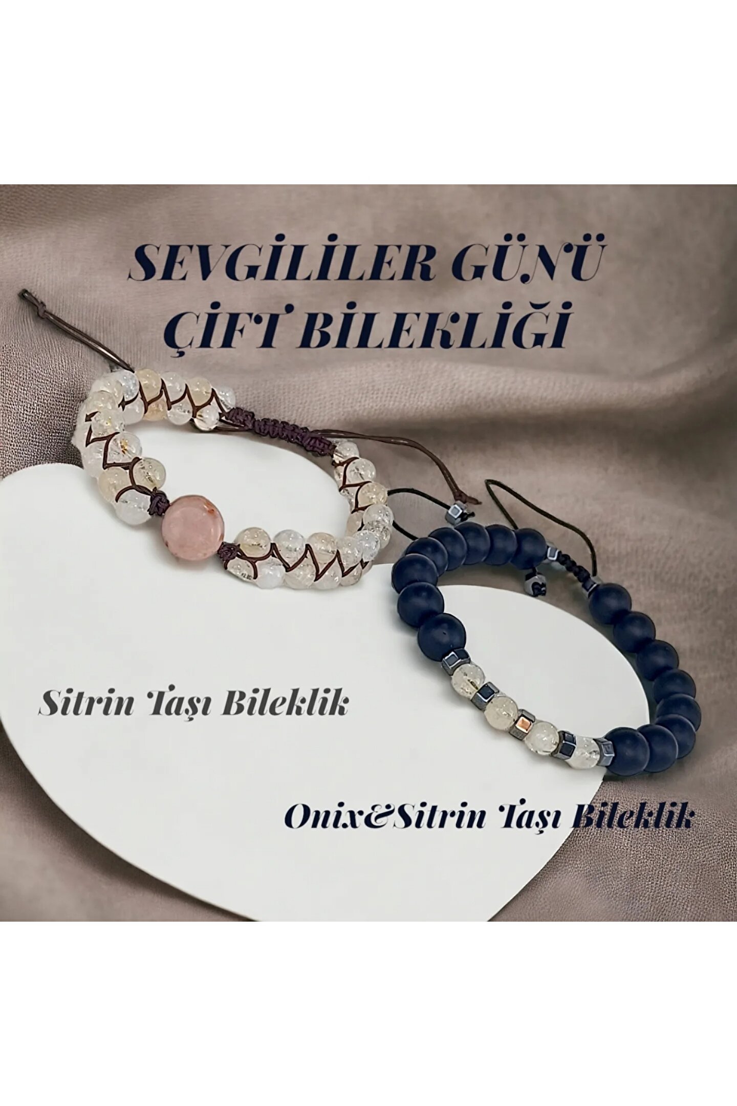Sevgililer Günü'nde özel anlamlar taşıyan bu bileklik, hem şık hem de anlamlı bir hediye seçeneği sunar.; Doğaltaş Onix ve Sitrin taşı kullanılarak üretilmiş olup, doğanın güzelliğini parmaklarınıza taşır.; Özel tasarımıyla dikkat çeken bu bileklik, hem günlük kullanım için idealdir hem de özel günlerde şıklığınızı tamamlar.; Onix ve Sitrin taşlarının eşsiz renkleri ve parlaklığı sayesinde göz alıcı bir görünüm sağlar.; Doğal taşların sağladığı pozitif enerji ile her zaman yanınızda taşıyabileceğiniz bir aksesuardır.; Uzun süreli kullanıma uygun yapısıyla kalitesini uzun süre korur ve sık kullanımdan etkilenmez.;