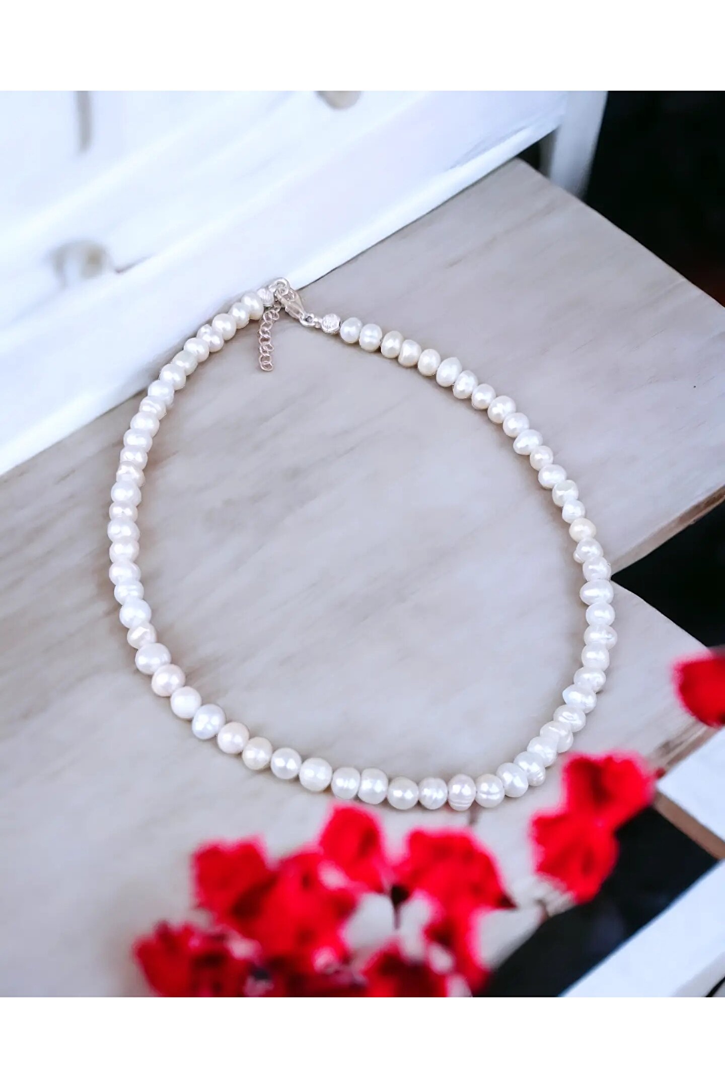 6/7 mm inci ile 925 ayar gümüş malzeme kullanılarak üretilmiş, uzun ömürlü ve kaliteli bir aksesuar deneyimi sunar; Saf su incisi taşı ile tasarlanmış, zarif ve göz alıcı bir görünüm kazandırır; Her bir inci taşı özenle seçilmiş ve kolyenin genel estetiğini tamamlar; Gümüşün parlaklığı ve incinin doğal ışıltısı ile her ortamda dikkat çekici bir stil oluşturur.