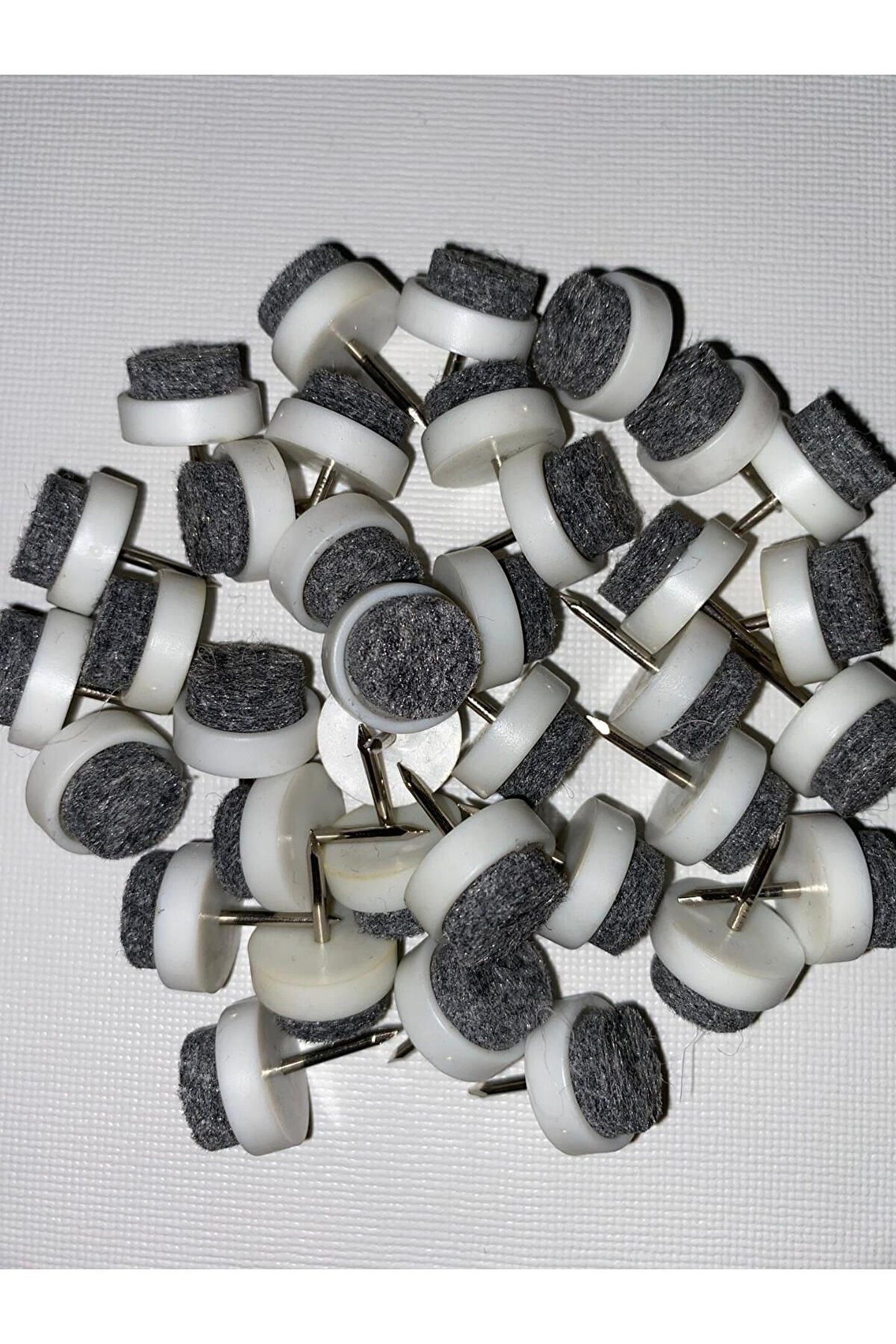 20 Adet Çap 15 Mm, Beyaz Plastik Tabanlı, Kendinden Çivili Sandalye Keçesi