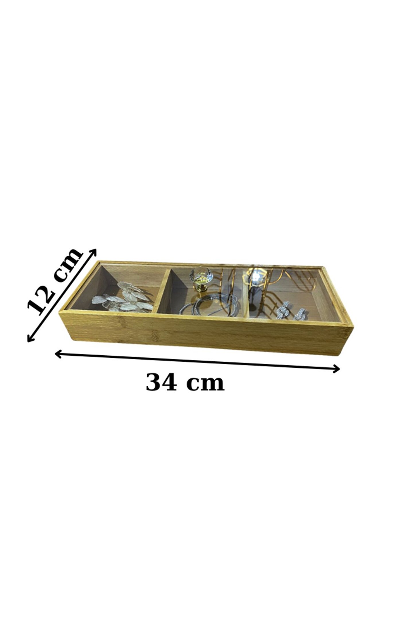 3 Bölmeli Düzenleyici Organizer Bambu Saklama Kutusu, Takı Kutusu, Aksesuar Kutusu