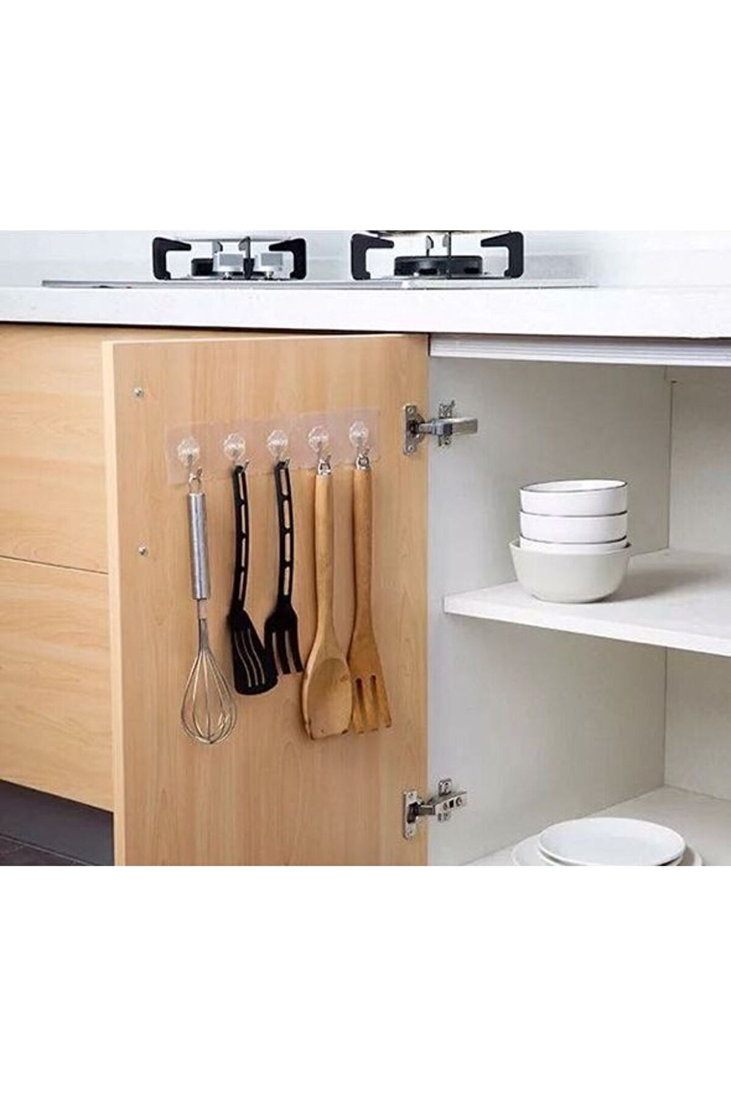 almital mobilya aksesuarları f 5 Adet 6x6 Cm Şeffaf Kendinden Yapışkanlı Kancalı Suya Dayanıklı Güçlü Askı