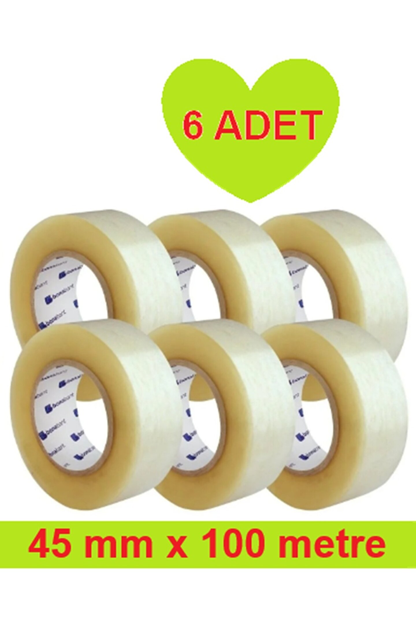 6 Adet 4,5 Cm X 100mt Akrilik Şeffaf Koli Bandı