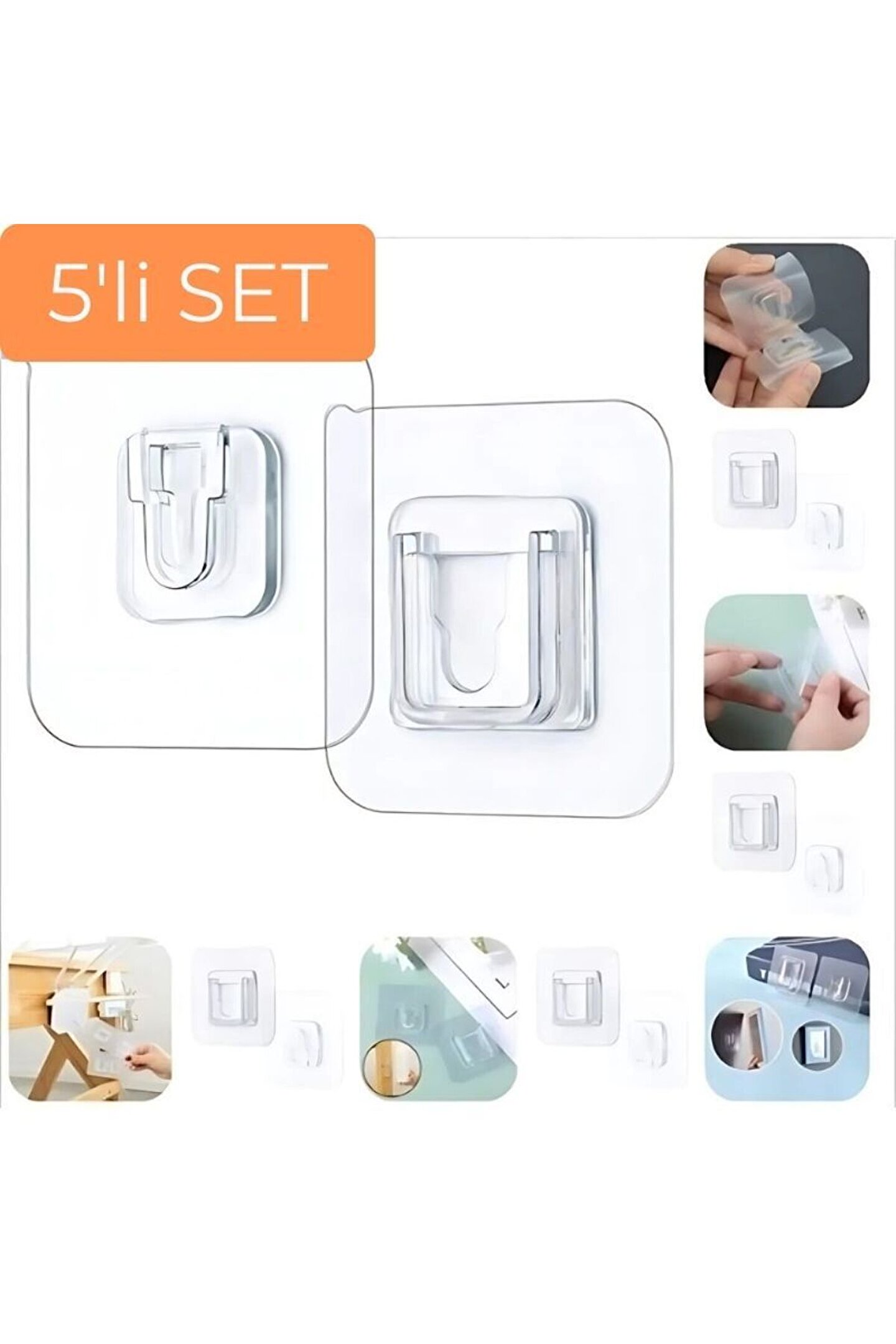 Kuriton 5 SET Geçmeli Klips, Kendinden Yapışkanlı Eşya Sabitleme Askısı
