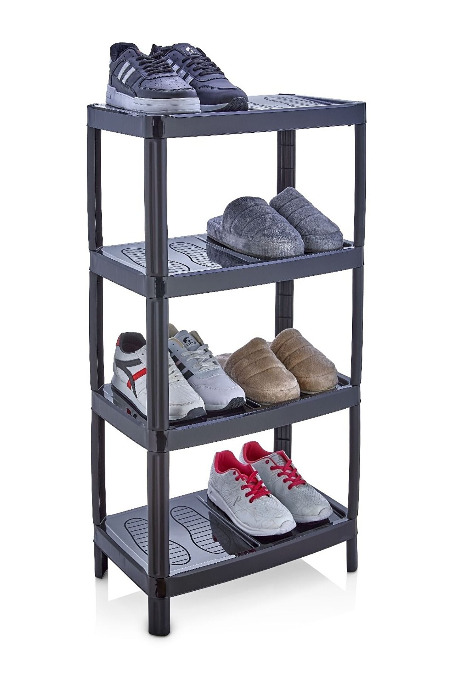 Modern 4 Katlı Ayakkabılık Siyah Renk Portatif Ayakkabı Standı 4 Katlı