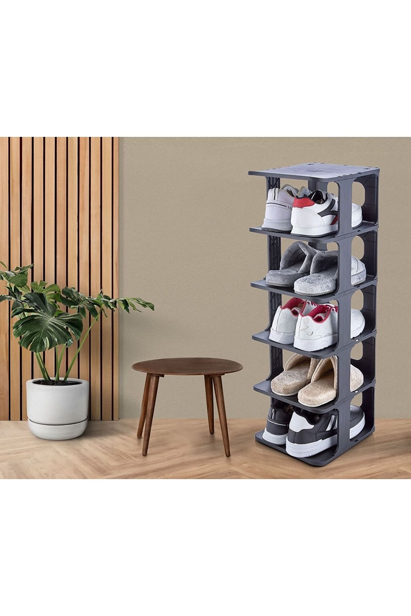 Modern 6 Katlı Ayakkabılık Antrasit Renk Portatif Ayakkabı Standı 6 Katlı