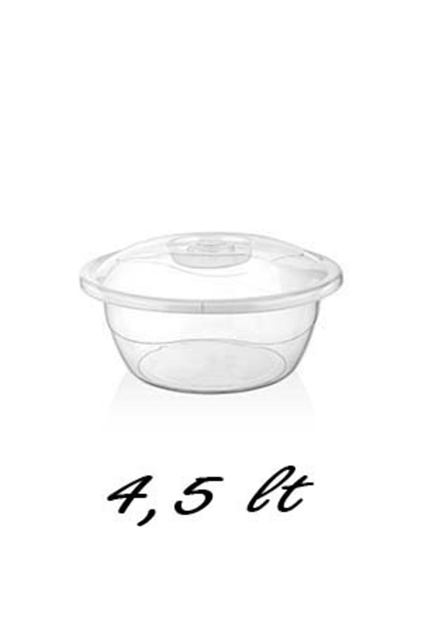 Plastik 4,5 Litre Kapaklı Hamur Leğeni Saklama Kabı Şeffafl (Çap 27 Cm)
