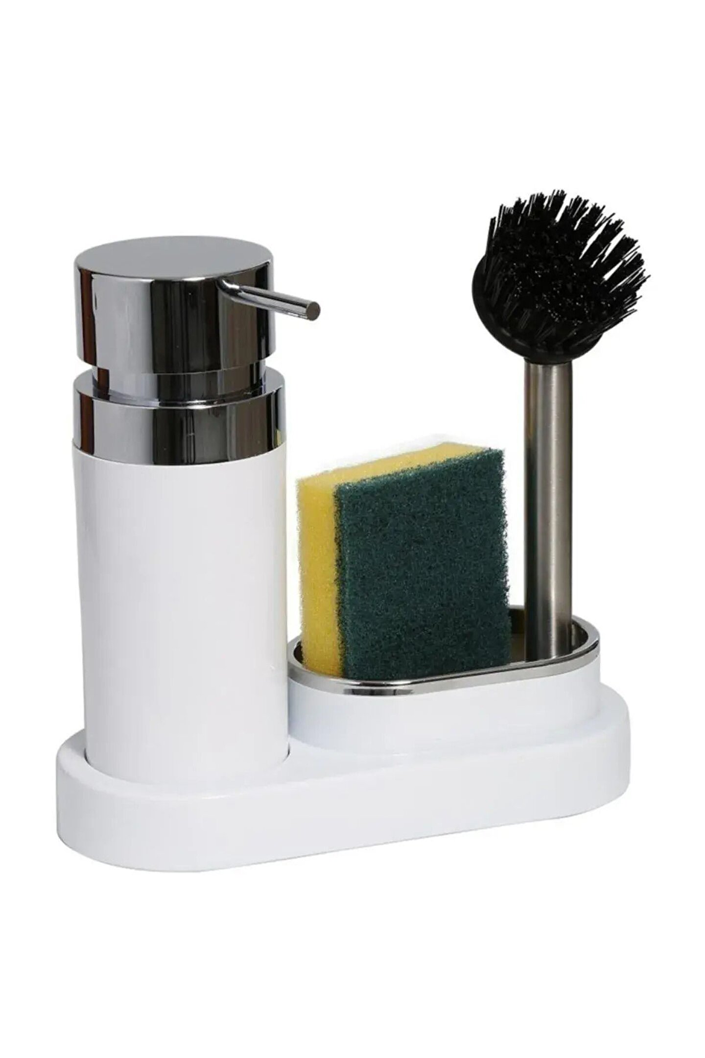 Sıvı Sabunluk, Fırçalı, Sünger Hazneli, Bulaşık Yardımcısı, Beyaz Krom Desenli