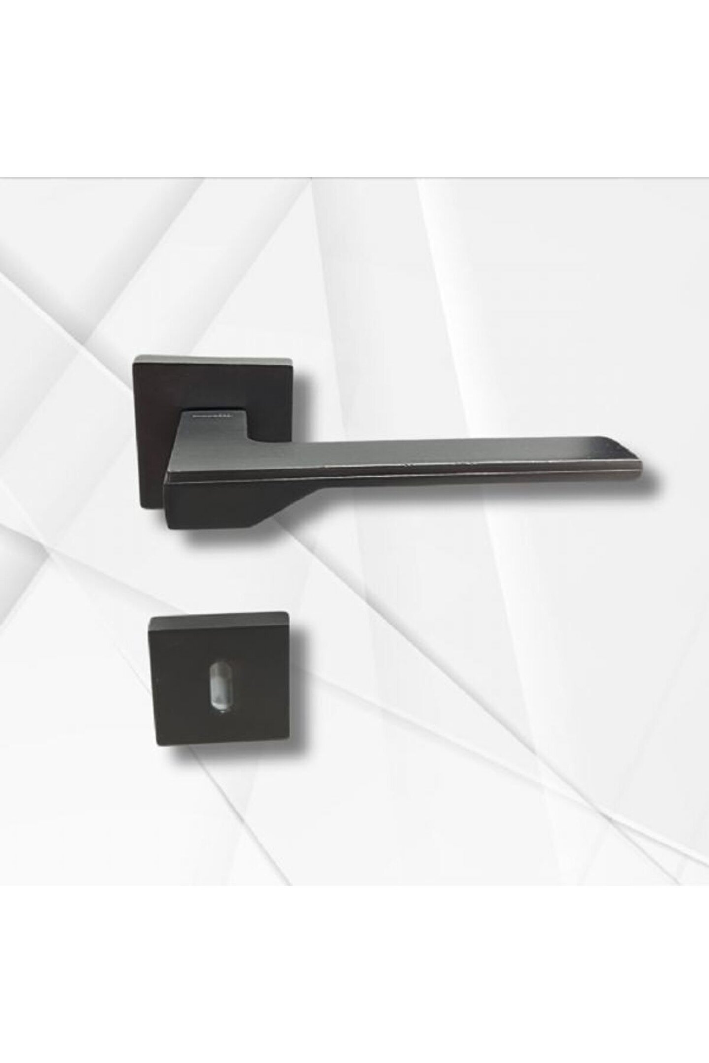 Stilo Antrasit Kare Rozetli Oda Kapı Kolu ve 40X23mm Antrasit Oda Gömme Kilit Set
