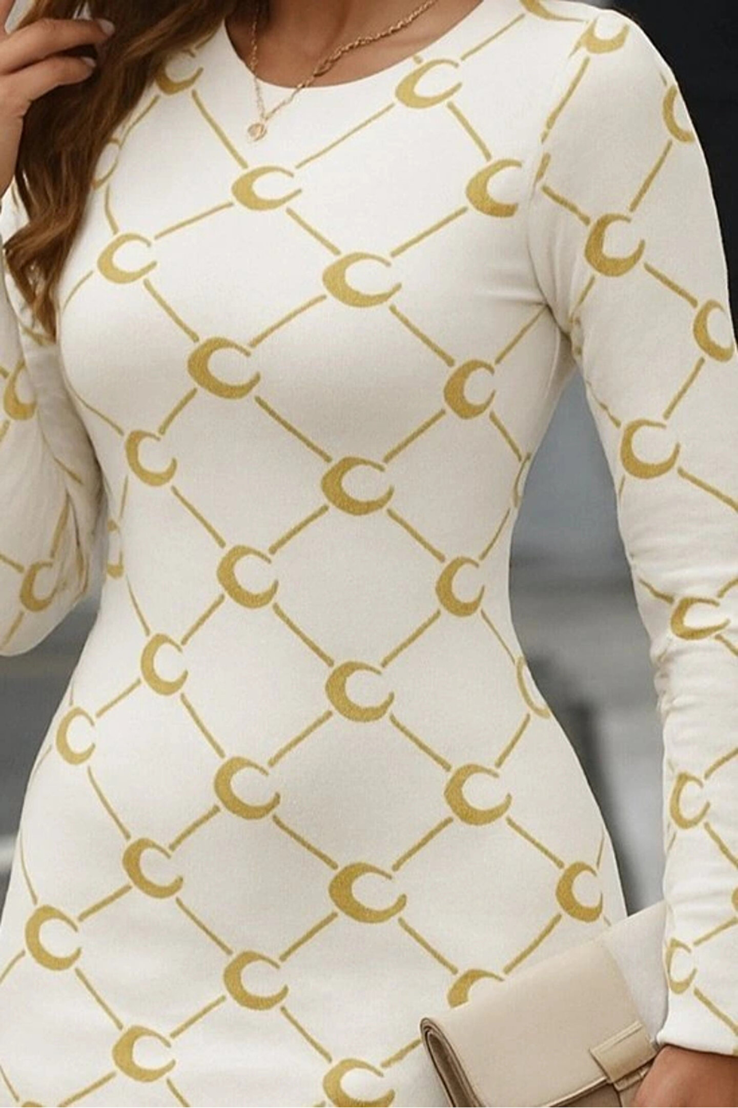 ALPACO Kadın Bisiklet Yaka Uzun Kol Triko Mini Boy Elbise