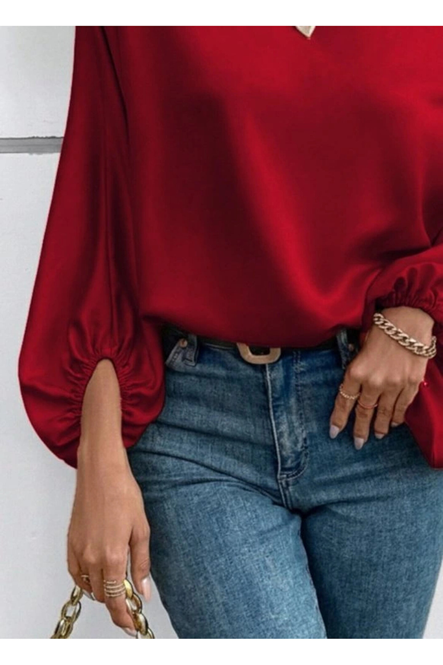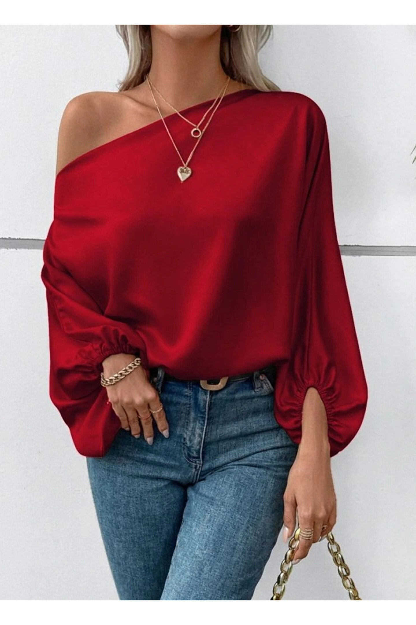 Kadın Tek Omuzu Açık Uzun Kollu Salaş Sandy Bluz