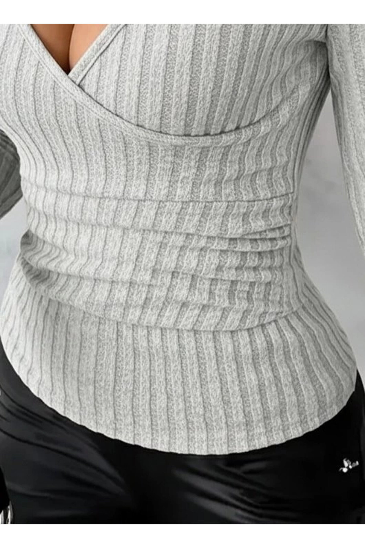 Kadın Uzun Kollu Kruvaze Yakalı Incili şardonlu Kaşkorse Bluz