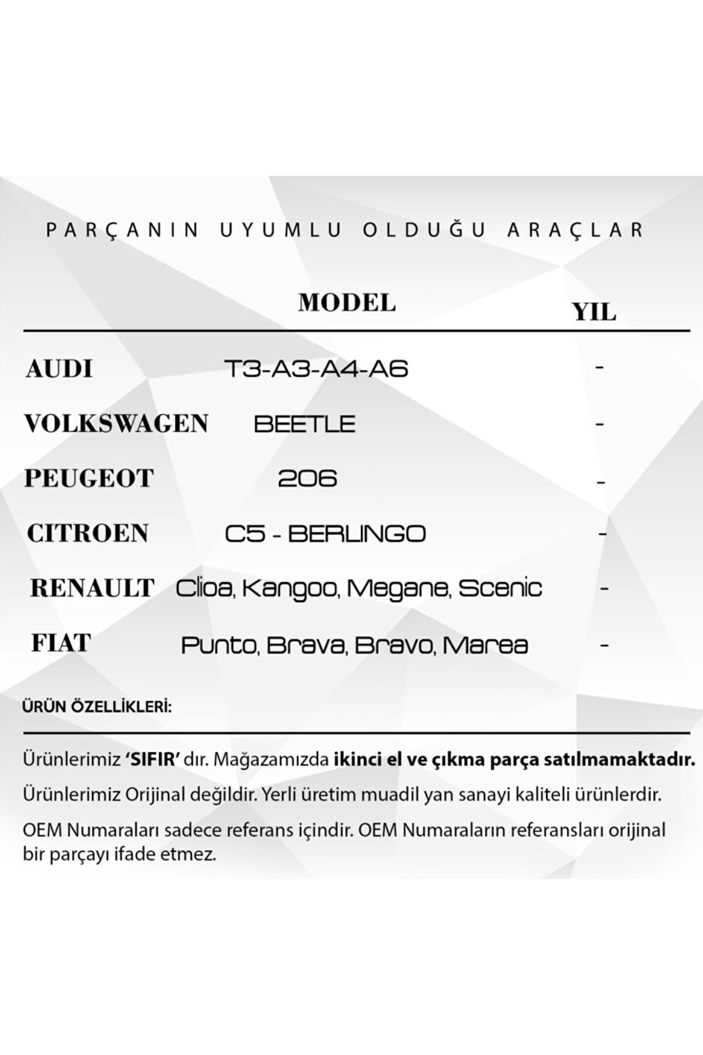 5 Adet Renault Audi VW Peugeot için Kilometre Gösterge Motor Kapağı.; Araba Kilometre Gösterge Motor Kapağı, DB2202-1, otomobilinizin mükemmel performansını ve dayanıklılığını artırmak için tasarlanmış bir aksesuardır.; Bu kapak, motorunuzun korunmasını ve kilometre göstergesinin ömrünün uzatılmasını sağlar.; Üst düzey işçilik ve malzeme kalitesi ile üretilmiştir, bu da ürünün dayanıklılığını ve güvenilirliğini garanti eder.; Bu kapak, motorunuzun ömrünü uzatarak olası arızaları önleme konusunda önemli bir rol oynar.; Kolay kurulum özelliği ile hızlı ve pratik bir şekilde monte edilebilir.; Ürünün mükemmel uyumu, aracınızın estetiğini ve fonksiyonelliğini artırır.; Araba Kilometre Gösterge Motor Kapağı, sadece aracınızın değil, aynı zamanda sürüş deneyiminizin de kalitesini yükseltir.