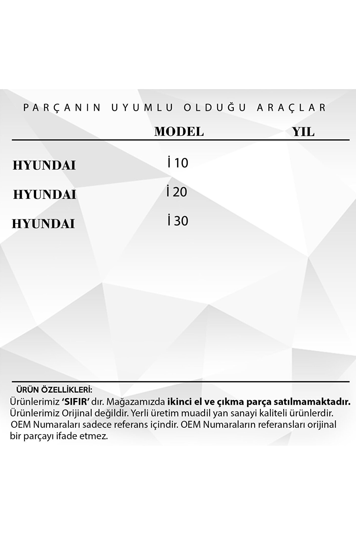 Kia.; Hyundai i30 i20 i10 İçin Yan Ayna Tamir Dişlisi- 30 Diş.; MR2284 kodlu Araba Yan Ayna Tamir Dişlisi- 30 Diş, aracınızın yan aynasının sorunsuz çalışması için ideal bir çözümdür.; Bu parça, aracınızın yan aynasının düzgün ve verimli hareket etmesini sağlar.; Üstün kaliteli malzemeden üretilmiştir, bu da ona yıllarca dayanıklılık ve güvenilirlik sağlar.; Yüksek kaliteli işçilik, bu dişlinin aracınıza mükemmel bir uyum sağlamasını ve en iyi performansı sunmasını sağlar.; 30 dişli yapısı, hassas hareket ve kontrol sağlar.; Araba Yan Ayna Tamir Dişlisi- 30 Diş, aracınızın yan aynasının ömrünü uzatır ve sürüş deneyiminizi güvenli ve konforlu hale getirir.; Bu yedek parça, yan aynanın tamirinde veya değiştirilmesinde mükemmel bir seçimdir.