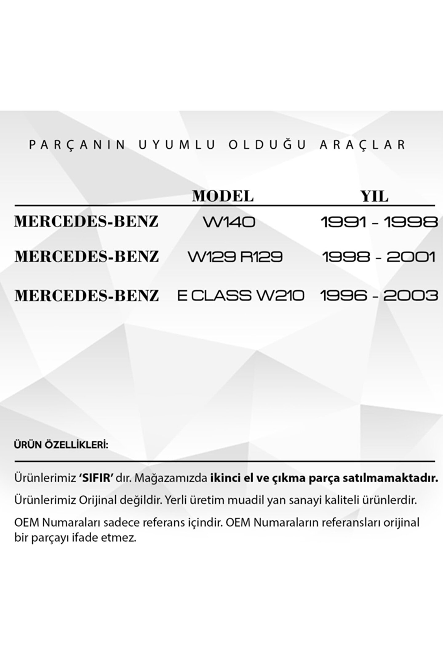 Mercedes W210. W140 için Katlanır Sağ Ayna Cam Destek Tamir Parçası.; Araba Katlanır Sağ Ayna Cam Destek Tamir Parçası ile aracınızdaki ayna problemlerini kolayca çözme imkanı bulabilirsiniz.; Ürün Kodu: MR2240. Bu özel parça, araçlarınızdaki sağ aynalar için ideal bir çözüm sunar.; Tamir ihtiyaçlarınızı karşılamak için tasarlanmış olan bu parça, aynanızın verimli çalışmasını sağlar.; Katlanır özelliği sayesinde, dar alanlarda bile rahatlıkla kullanabilirsiniz.; Daha güvenli ve rahat bir sürüş deneyimi için aracınıza en uygun tamir parçasıdır.; Üstün performansı ve yüksek dayanıklılığı ile dikkat çeker.; Bu parça, aynanızı tamir etmek için gereken tüm özelliklere sahiptir ve işinizi büyük ölçüde kolaylaştırır.; Araba Katlanır Sağ Ayna Cam Destek Tamir Parçası, aracınızın ömrünü uzatırken aynı zamanda sürüş güvenliğinizi artırır.