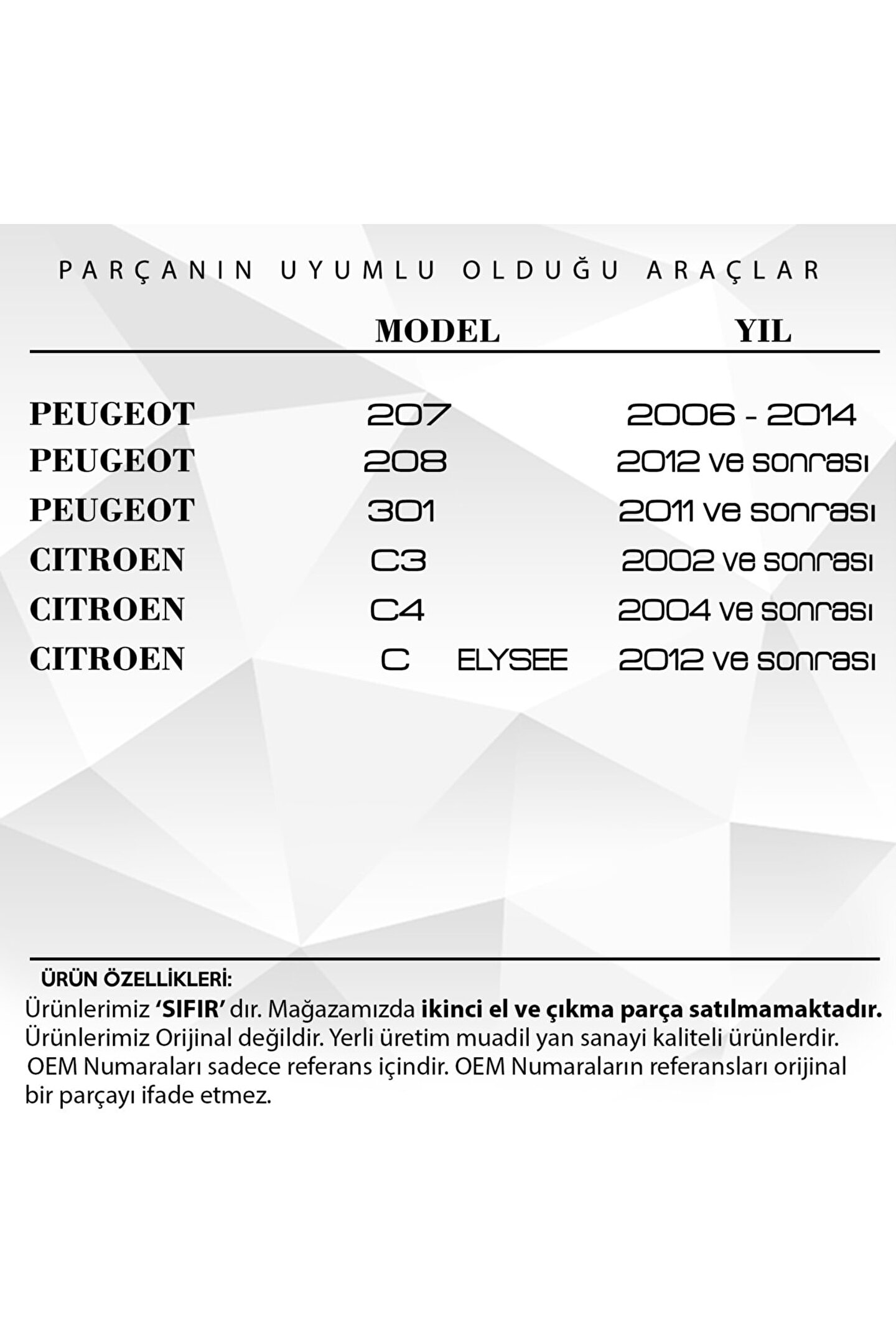 Peugeot 207.208.301.Citroen C3.C4 C Elysee için El Fren Düğmesi.; HB2219 kodlu Araba El Fren Düğmesi, aracınızın el freni kontrolünü mükemmel bir şekilde sağlar.; Üstün kaliteli malzemeden üretilmiştir ve bu sayede uzun süreli ve etkili bir kullanım imkanı sunar.; Yüksek Kaliteli Araba El Fren Düğmesi, dayanıklılığı ve mükemmel performansı ile sizi hayal kırıklığına uğratmayacak.; Kolay ve hızlı montaj imkanı sayesinde, aracınızı hemen kullanıma hazır hale getirebilirsiniz.; Bu ürün, el freni koluyla mükemmel bir uyum sağlar ve böylece güvenli bir sürüş deneyimi sunar.; HB2219 Araba El Fren Düğmesi, yüksek kalite standartlarına uygun olarak üretilmiştir ve bu sayede sizi ve sevdiklerinizi güvende tutar.; Arabanızın görünümüne modern bir dokunuş katacak bu ürün, sürüş deneyiminizi daha da keyifli hale getirecektir.