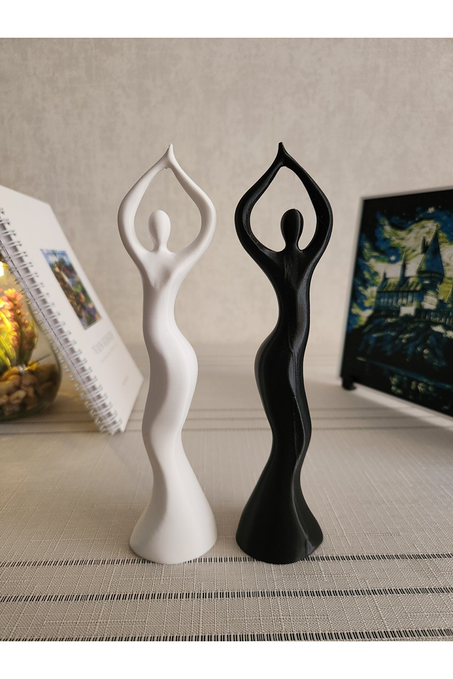 ÜRÜN SEPETE 4 ADET EKLENDİĞİNDE 4 ADET OLARAK FİYATLANDIRILIR VE 2SİYAH-2 BEYAZ OLARAK YOLLANIR.; İskandinav tarzının zarif çizgilerini yansıtan dans eden kadın heykeli, evinizin dekorasyonuna modern bir dokunuş katıyor.; - İki parçadan oluşan set, hem tek başına hem de kombin olarak kullanılabilir böylece farklı alanlarda estetik uyumu sağlar.; - Yüksek kaliteli plastik materyalden üretilmiş olup, dayanıklılığı ve uzun ömürlü kullanımı garanti eder.; - 15cm yüksekliğinde ve 5 cm genişliğindeki bu figür, mekanınıza şık bir görünüm kazandırırken aynı zamanda fonksiyonel bir aksesuar görevi görür.; - Beyaz rengiyle her türlü iç mekan tasarımına kolayca uyum sağlayarak, evinizdeki renk paletine zarif bir kontrast oluşturur - Renk tonları değişiklik gösterebilir - Ürün greenroad tarafından gönderilecektir
