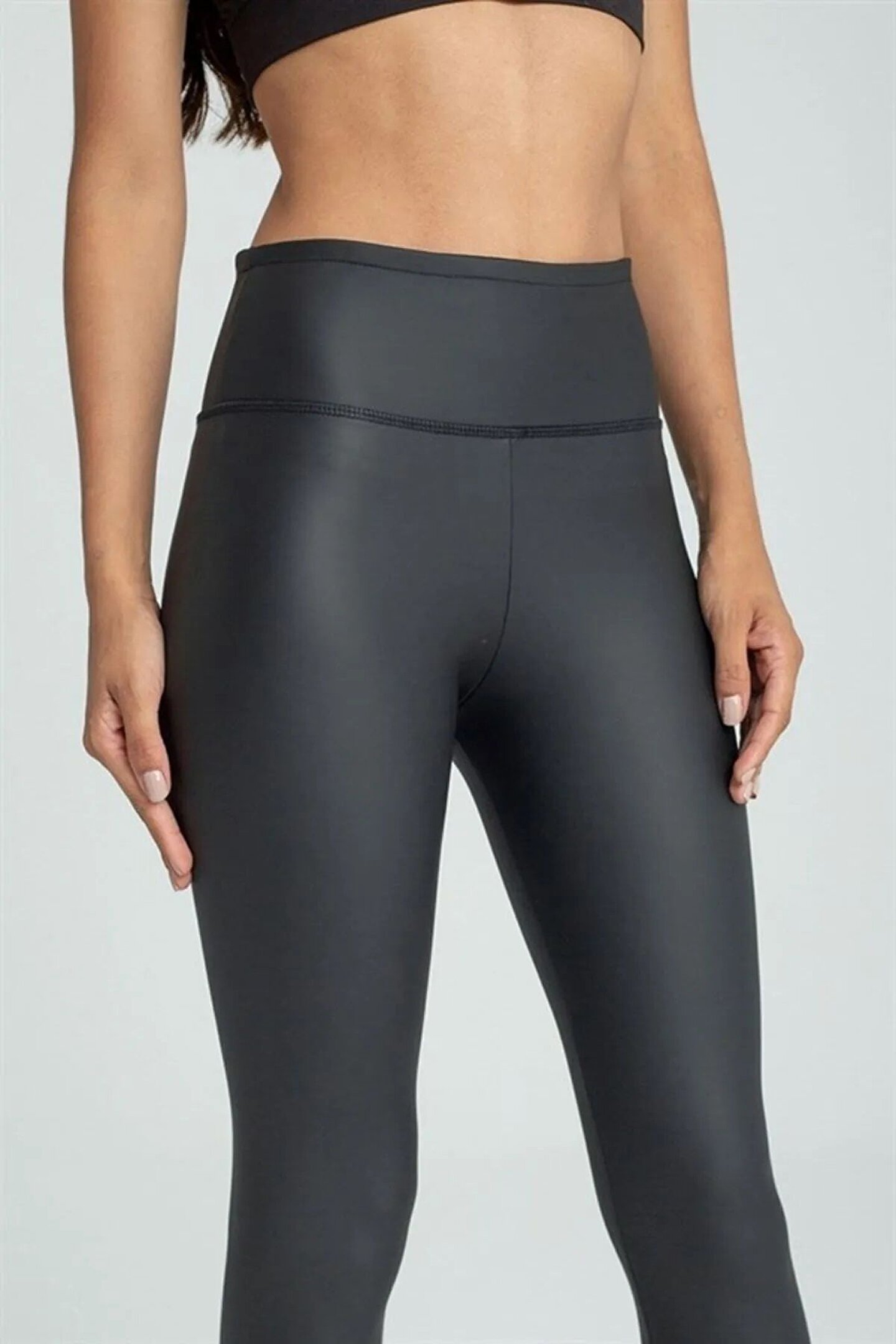- Siyah Mat Deri Tayt Yüksek Bel Şardonlu Geniş Kemerli Ve Toparlayıcı