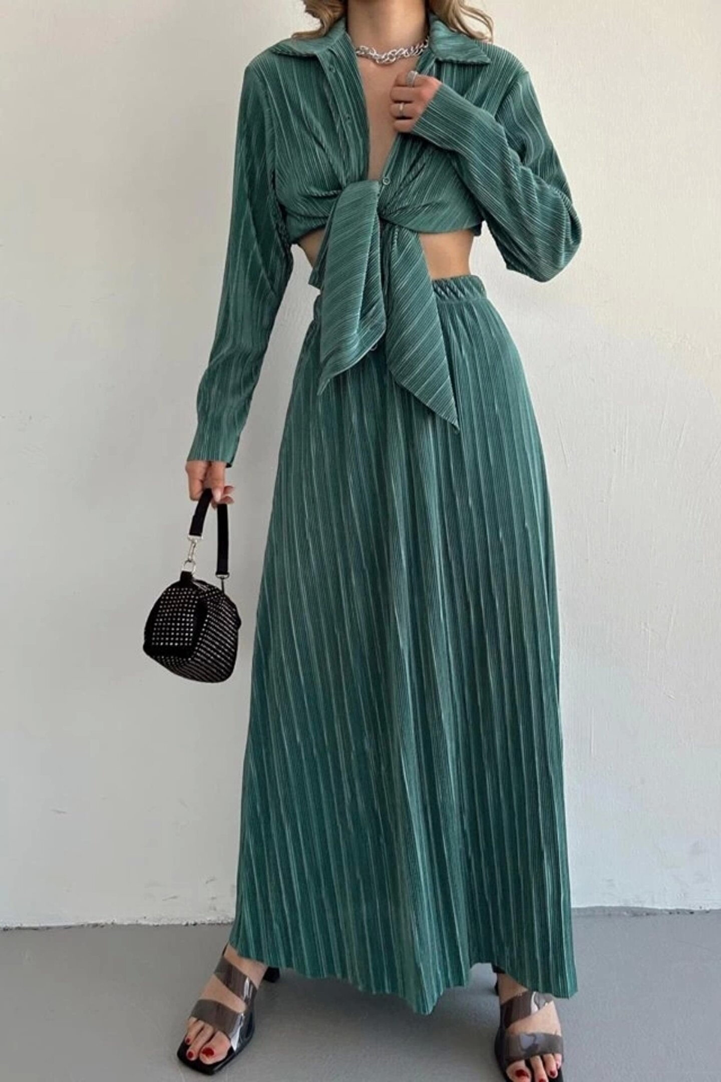 anizmir int Fitilli Gömlek Ve Uzun Etek Takım