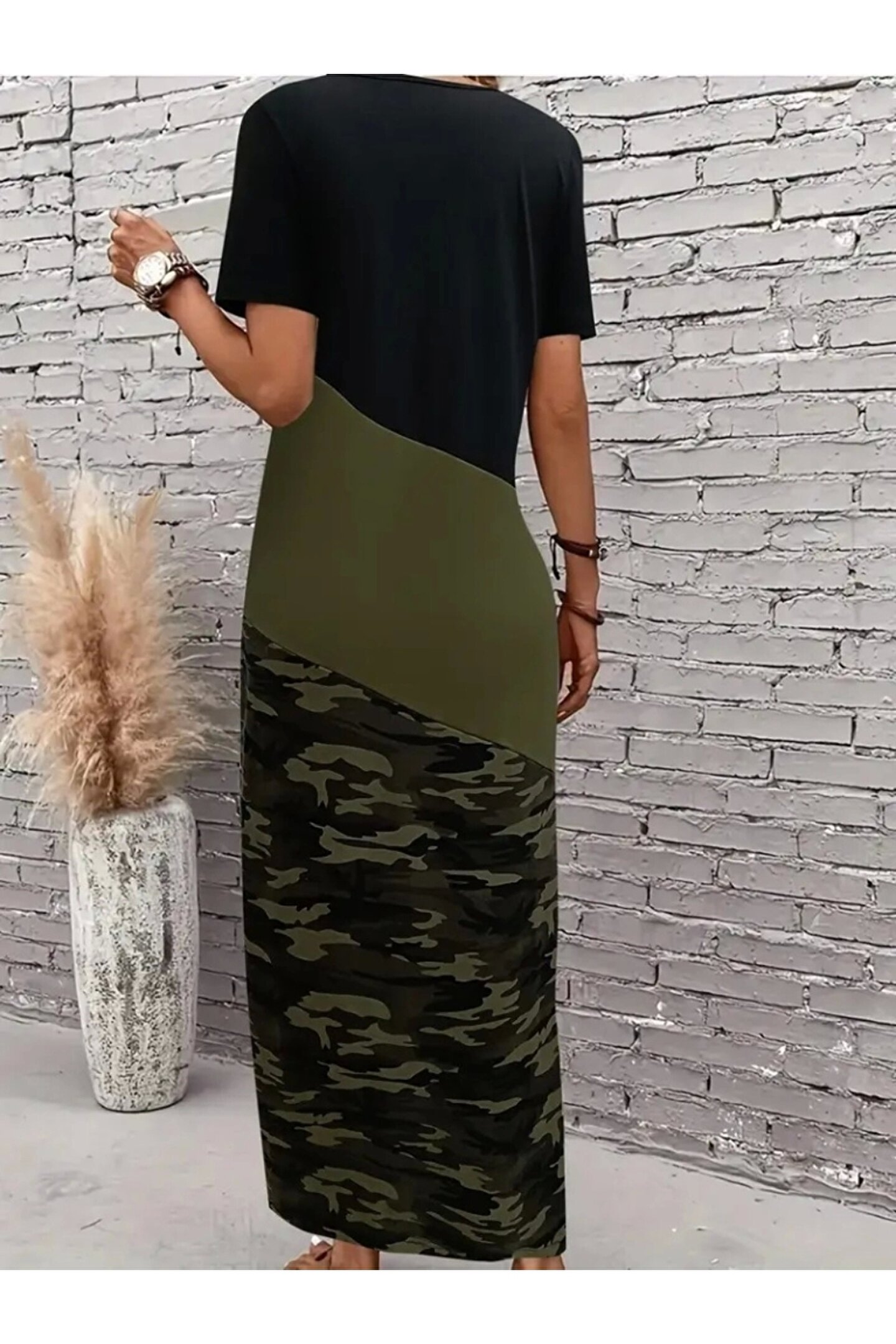 Kadın Kısa Kollu Bisiklet Yaka çok Renkli Maksi Viskon Elbise hediye paketi yapılabilir
