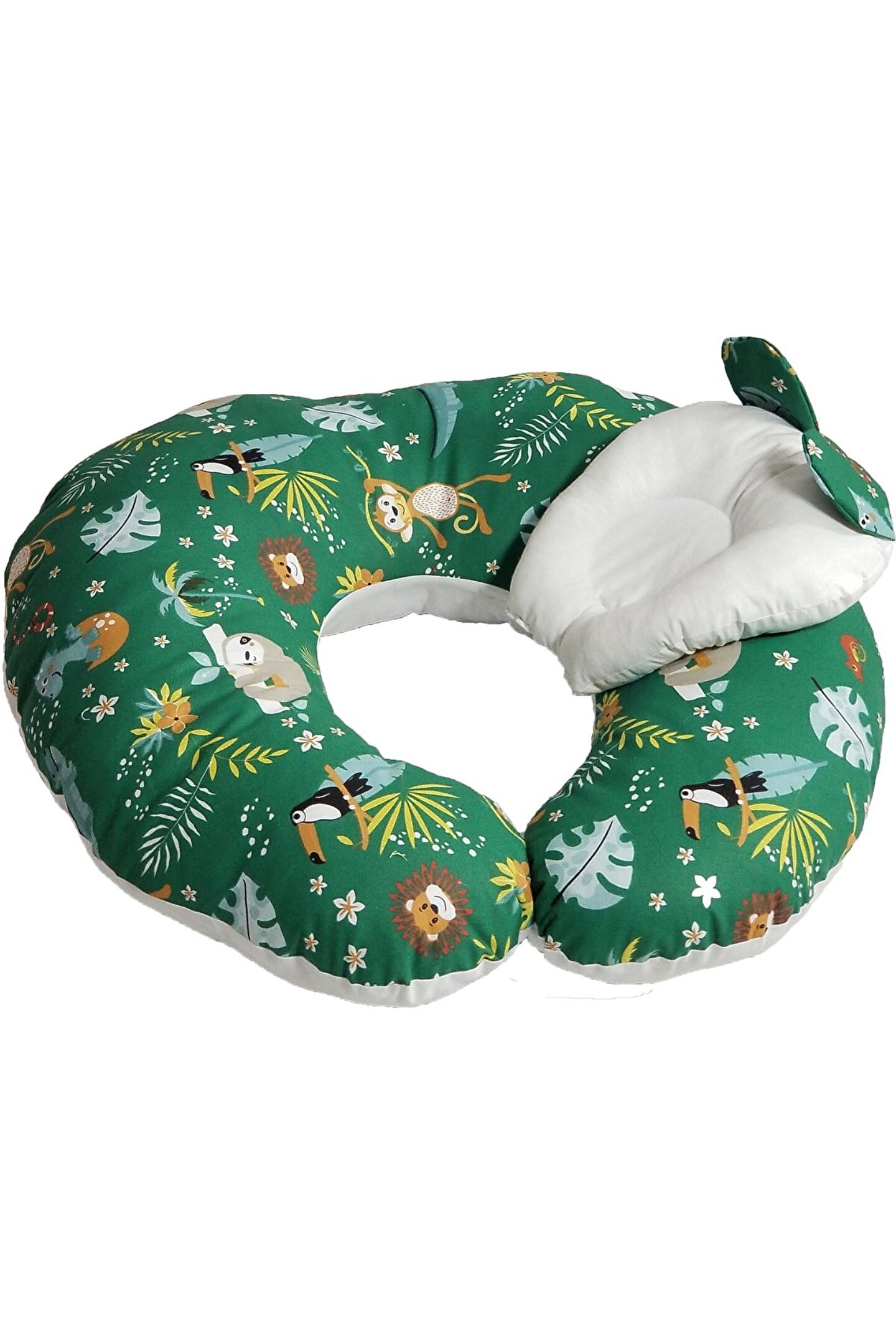%100 Pamuk Yeşil Hayvan Figürlü Çift Renk Emzirme Yastığı Destek Minderi, Düz Kafa Yastığı
