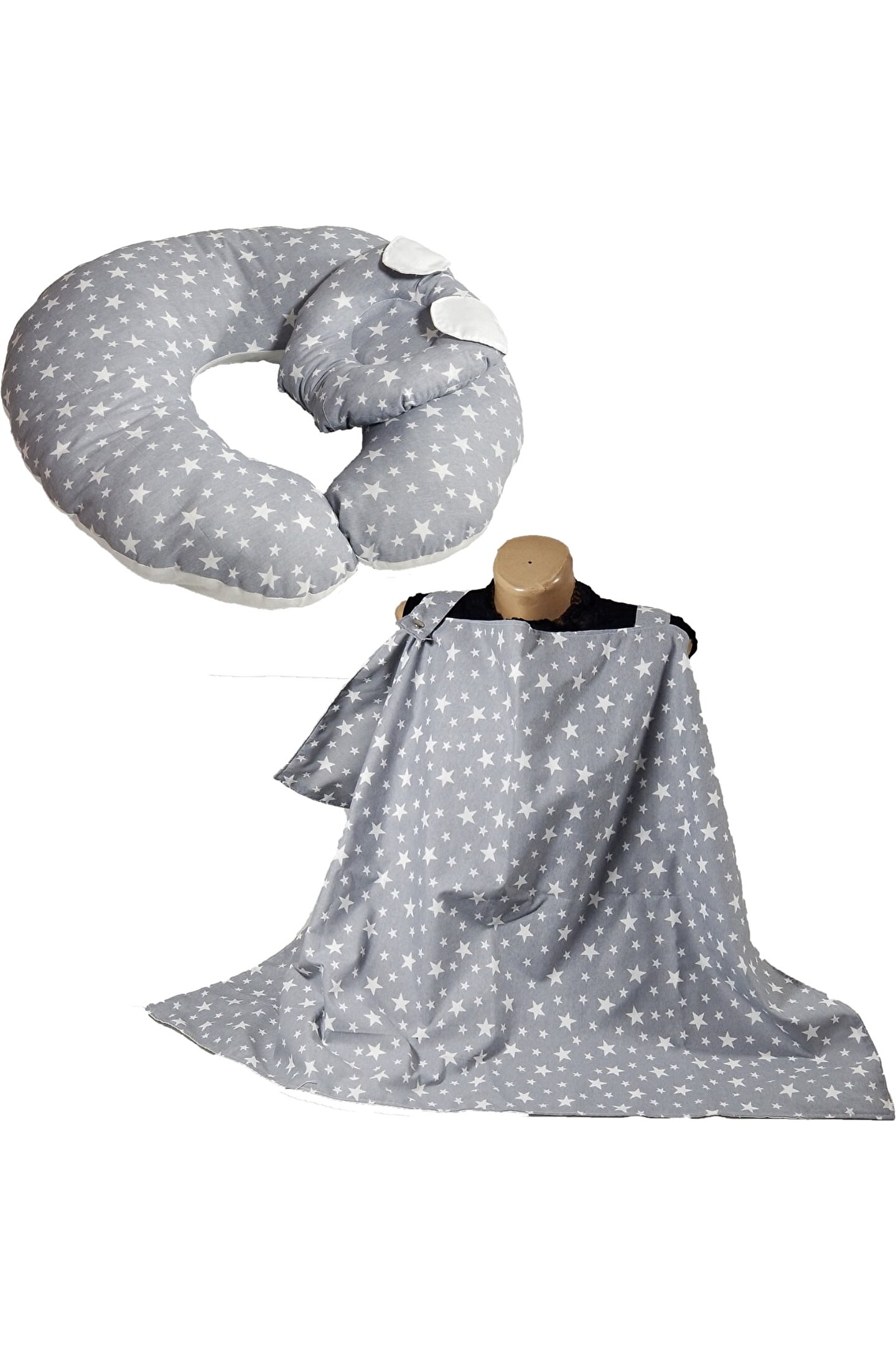 annebebektasarım Emzirme Minderi, Emzirme Örtüsü, Düz Kafa Yastığı, Gri Yıldızlı