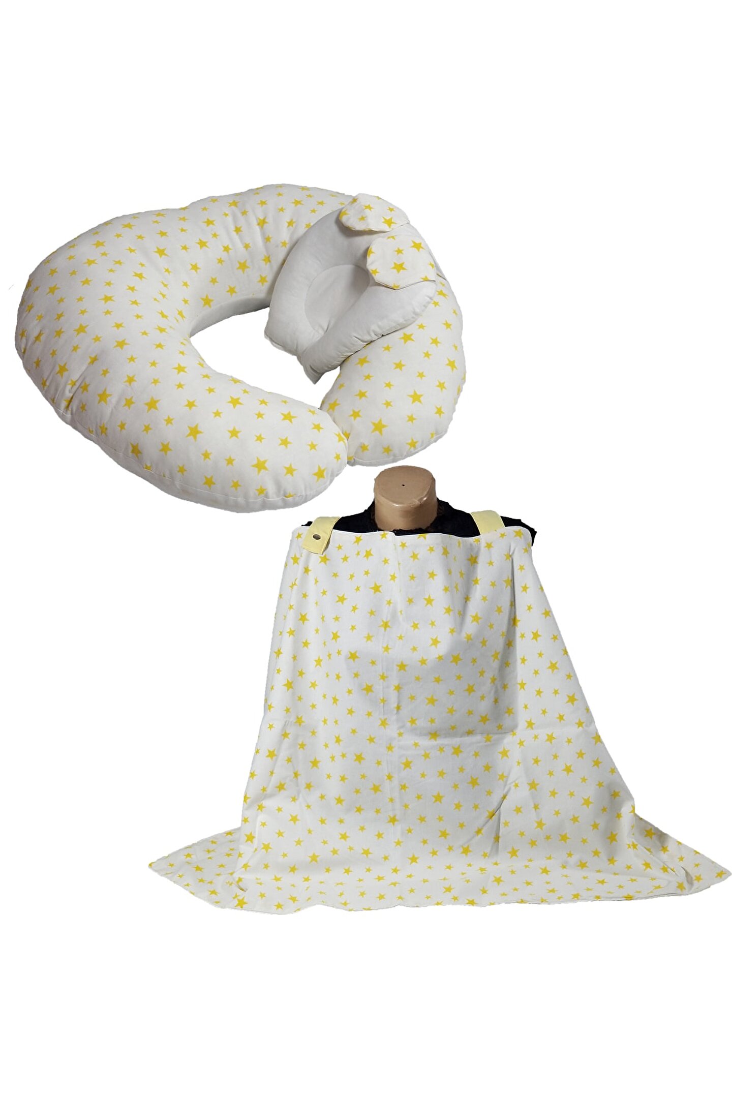 annebebektasarım Emzirme Minderi, Emzirme Örtüsü, Düz Kafa Yastığı, Sarı Yıldızlı