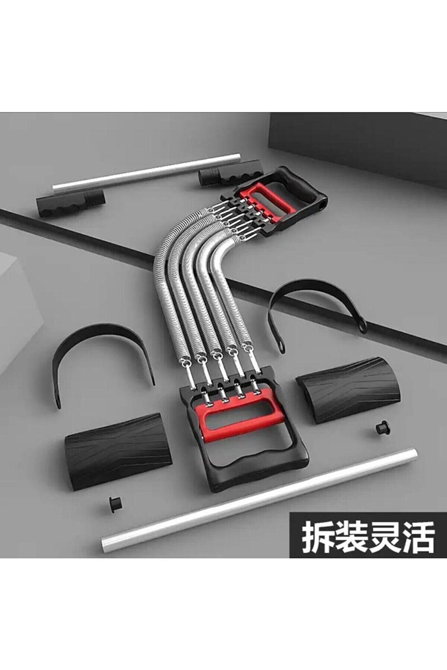 - Dayanıklı çelik malzeme ile üretilmiş, uzun ömürlü kullanım sunar.; - 5 farklı direnç seviyesi ile farklı fitness seviyelerindeki kullanıcılar için idealdir.; - El, ayak ve göğüs kaslarını hedef alan çok yönlü egzersiz imkanı sağlar.; - Gri ve kırmızı renk kombinasyonu ile şık ve modern bir görünüm sunar.; - Siyah web rengi, spor salonu ekipmanlarına kolayca uyum sağlar.; - Kaliteli ve güvenilir bir ürün deneyimi vaat eder.; - Yayları kurulu gelir ve montajda kolaylık sağlar.
