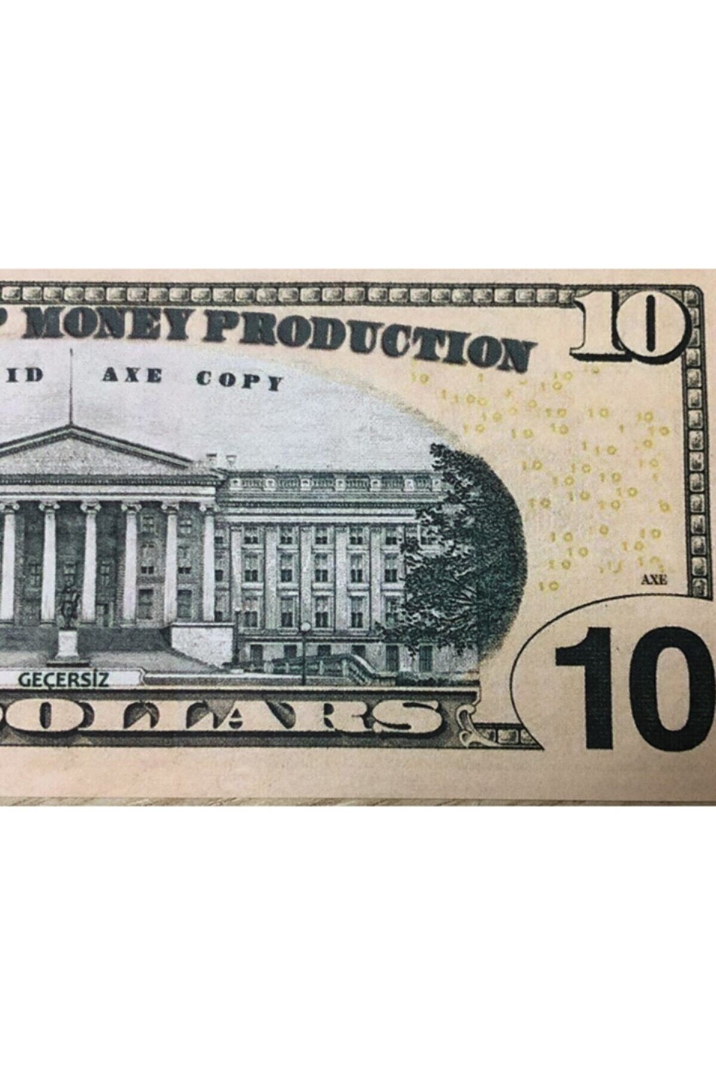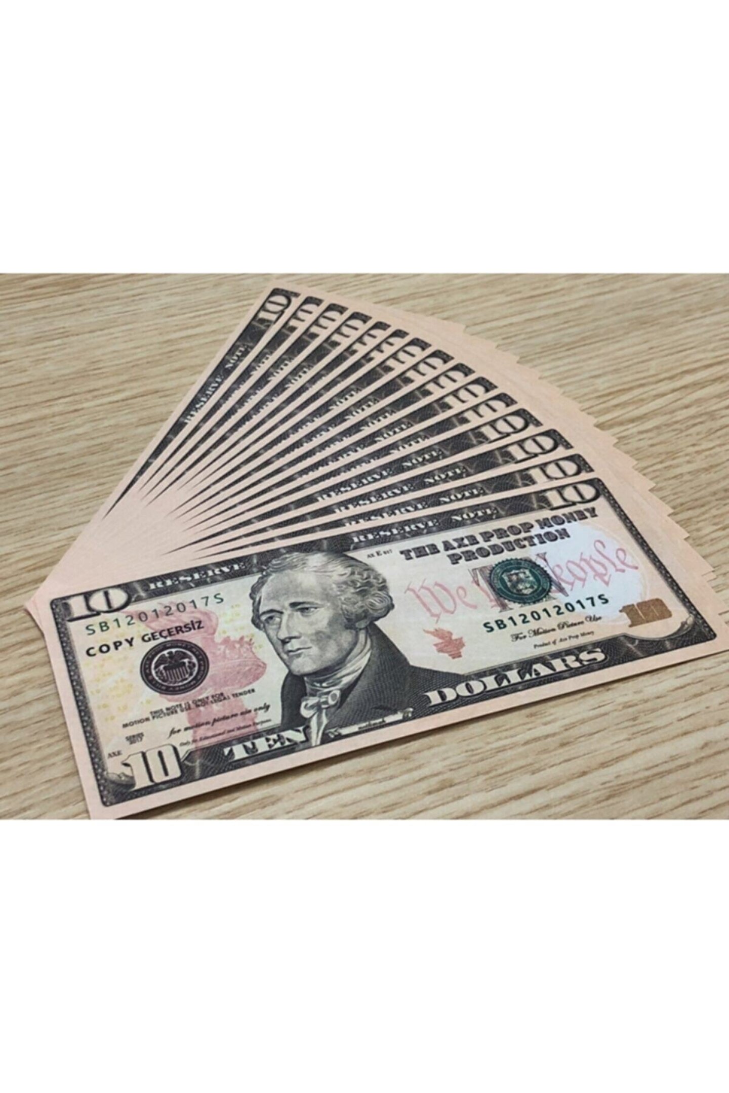 Tam 2 Deste Renkli ve Çift Taraf Baskılı Gerçek Görünümlü 10 Dolar 100 Adet