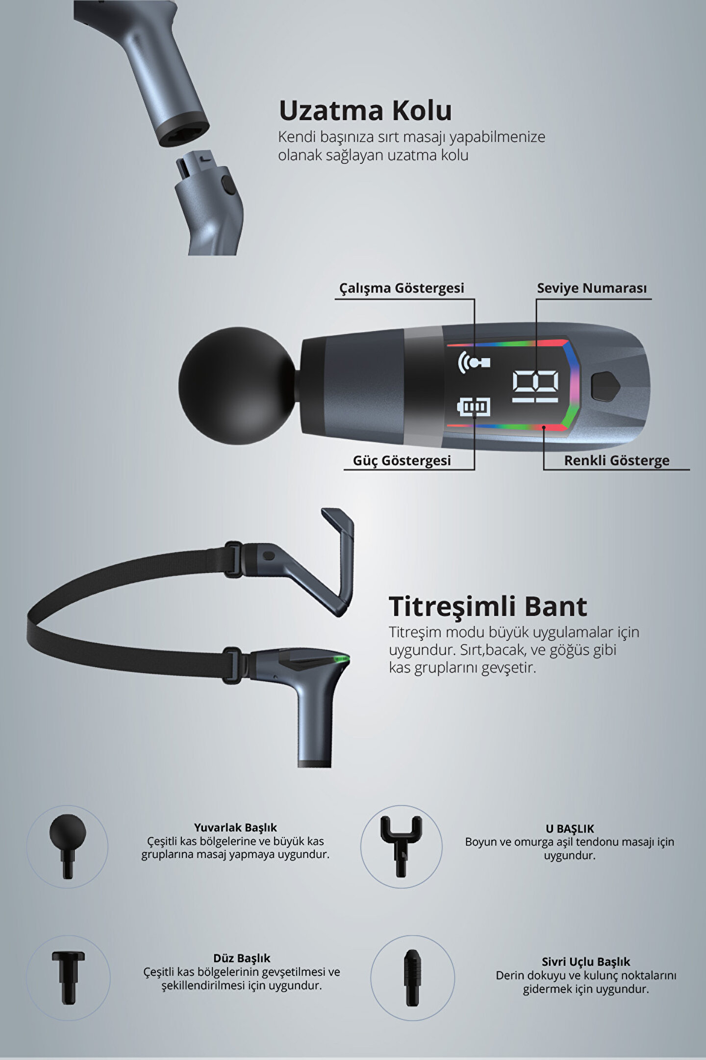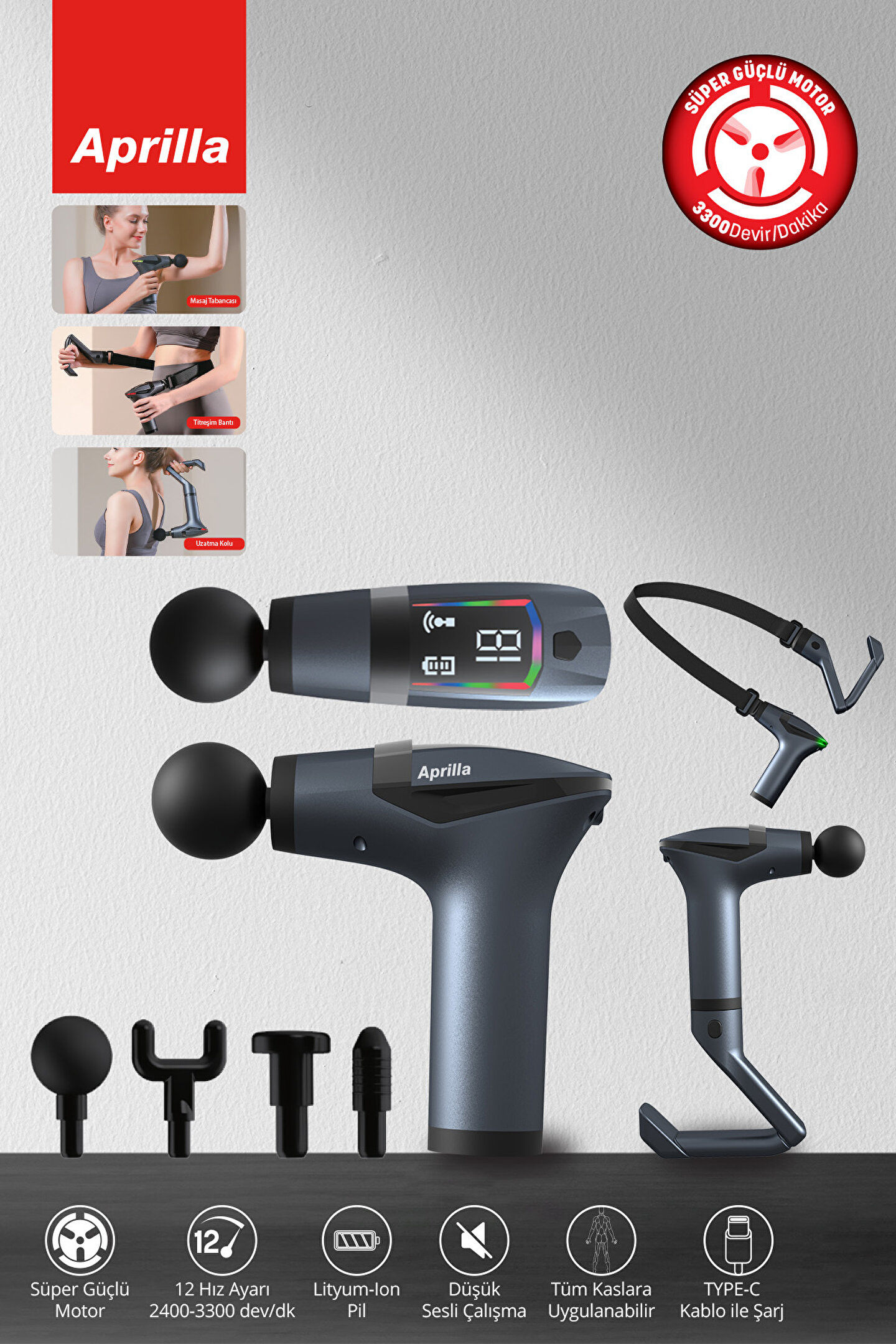 Aprilla Afm-2898 Yeni Nesil Ekranlı Şarjlı Profesyonel Tüm Vücut Masaj Tabancası Çok Fonksiyonlu Masaj Aleti